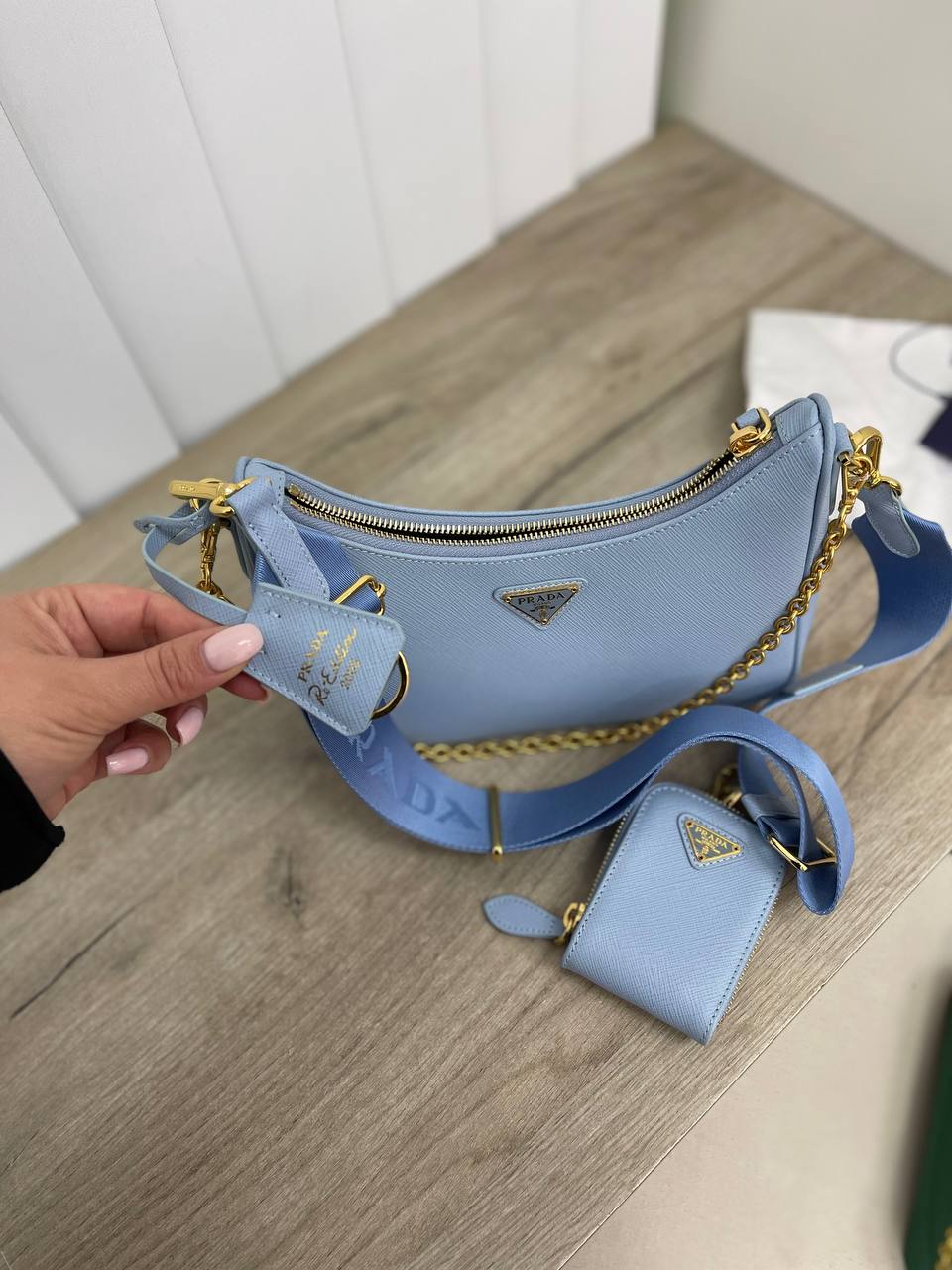 Сумка женская Prada LUX-84491 – это стильный аксессуар, который сочетает в себе элегантность и функциональность. Сумка выполнена в нежно-голубом цвете, имеет гладкую текстуру и привлекает внимание своим дизайном. Идеально подойдет для создания повседневных и вечерних образов.