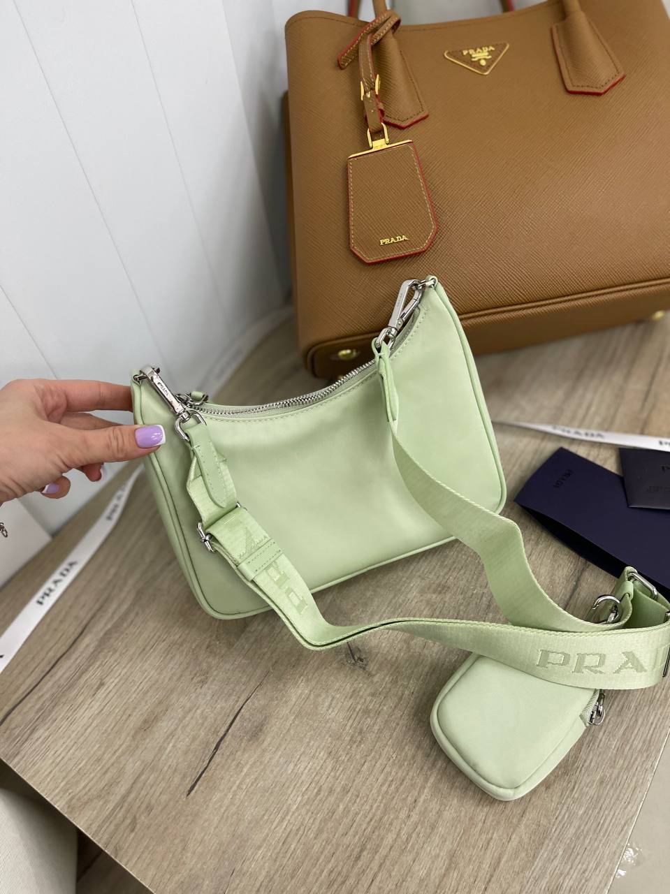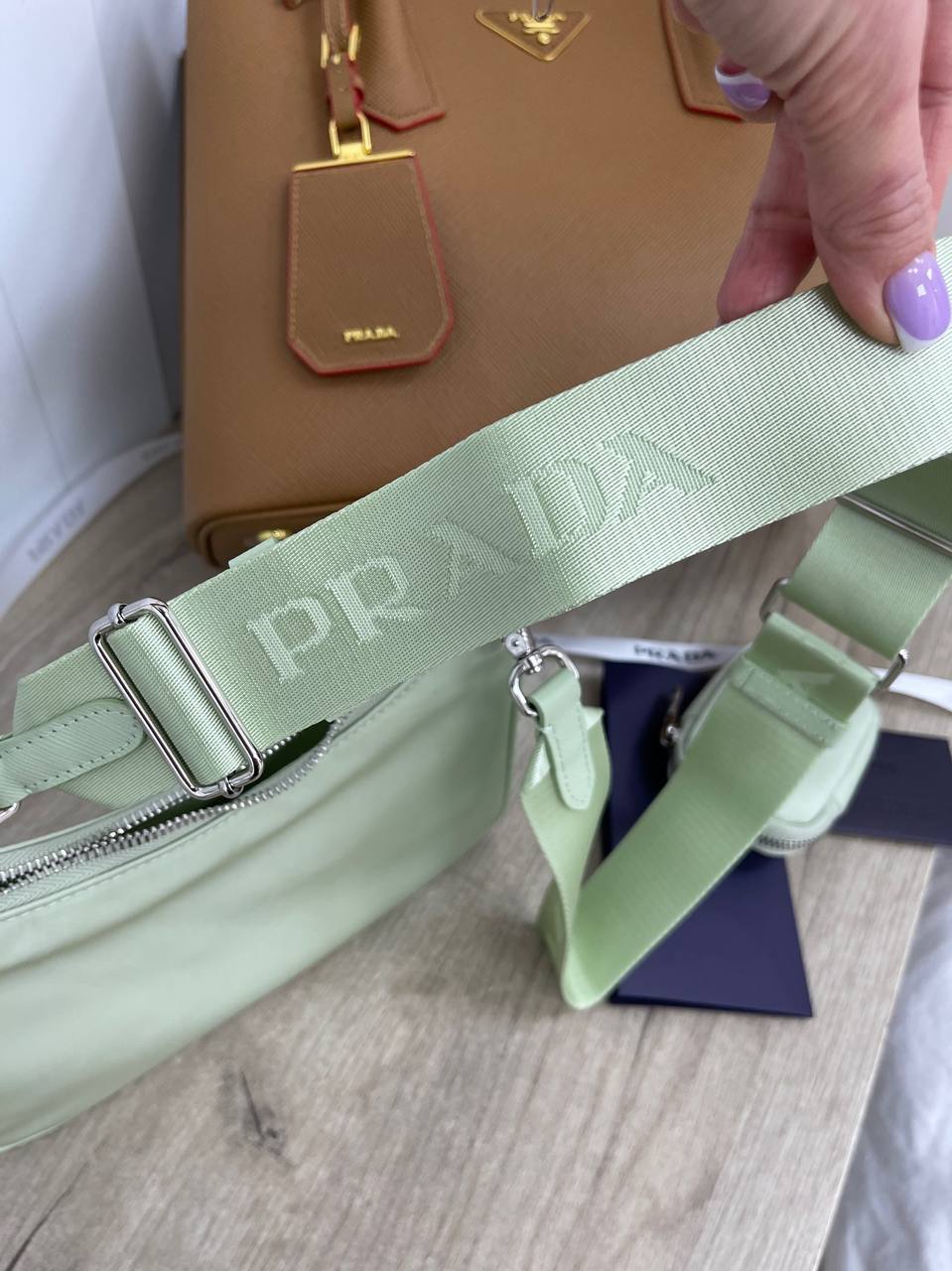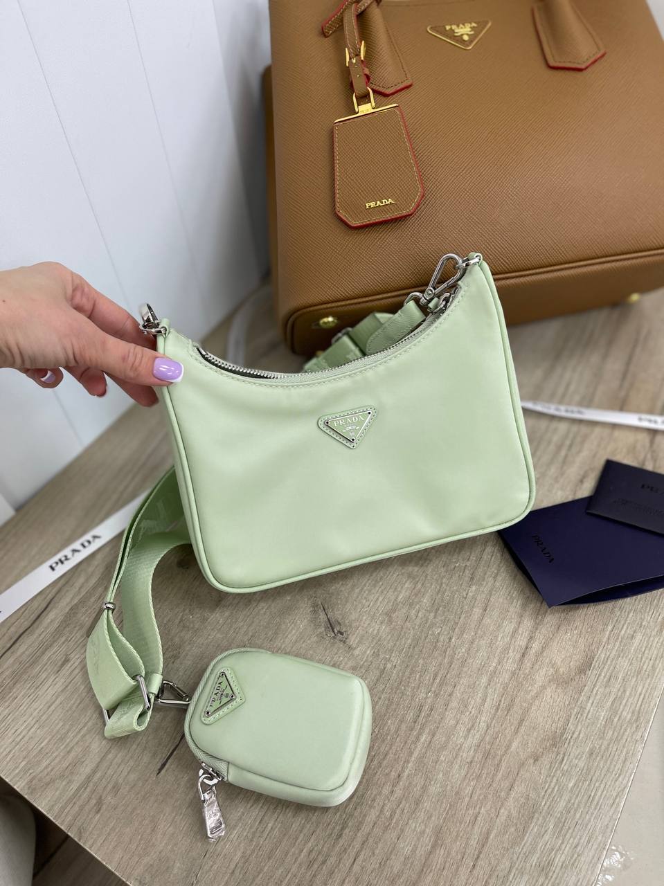 Сумка женская Prada LUX-87782 — это элегантный аксессуар в пастельных тонах. Сумка выполнена в нежном мятном цвете, имеет гладкую текстуру и утонченный дизайн, что делает ее идеальным дополнением к любому образу.