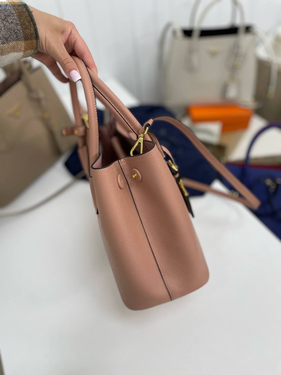 Сумка женская Prada LUX-90038 – элегантный аксессуар в классическом стиле. Цвет сумки — нежно-розовый, с текстурированной поверхностью. Эта сумка идеально подходит для повседневного использования, дополняя любой образ.