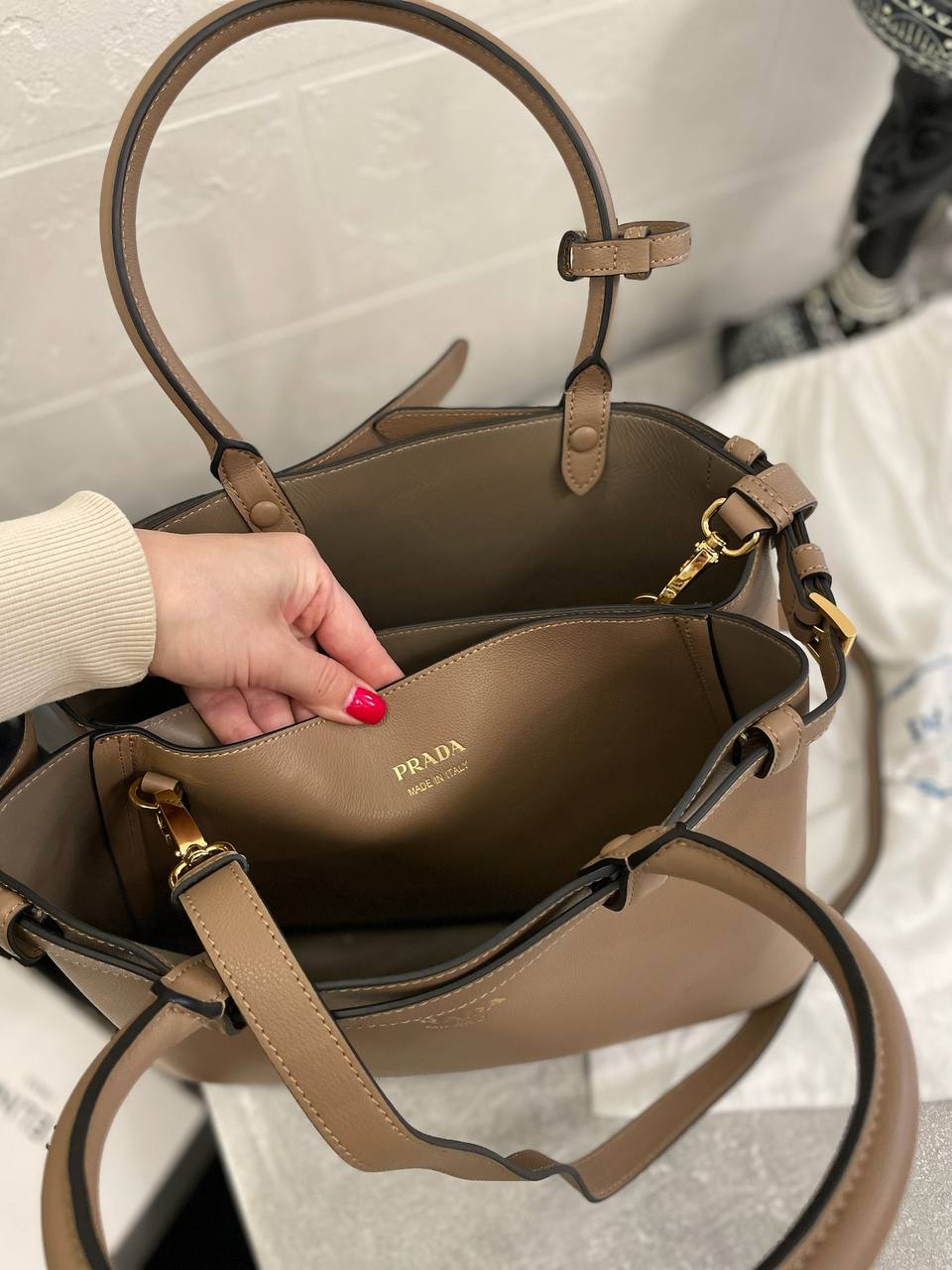 Сумка женская Prada LUX-104414 – элегантный аксессуар, который станет изысканным дополнением к любому образу. Выполнена в классическом стиле, сумка имеет прямоугольную форму и привлекательный нейтральный оттенок. Она предназначена для повседневного использования, подчеркивая безупречный вкус своей обладательницы.