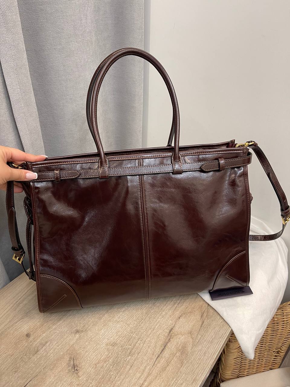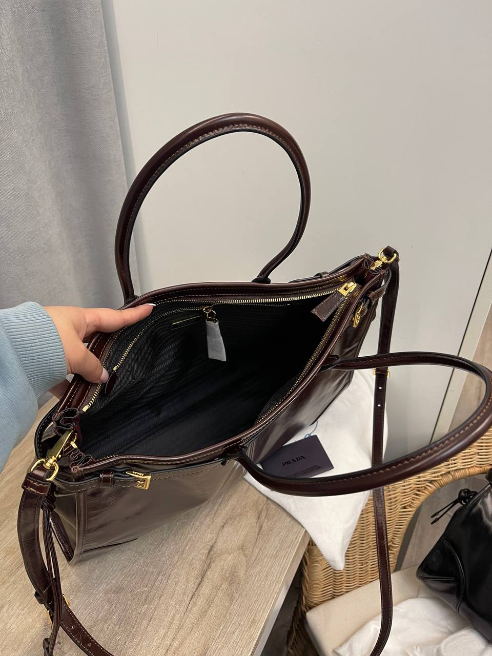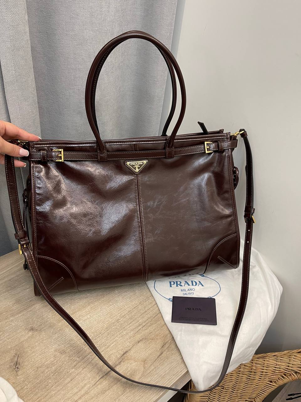 Сумка женская Prada LUX-111762 представляет собой элегантный аксессуар для повседневного использования. Выполнена в классическом стиле с насыщенным коричневым оттенком. Имеет прямоугольную форму, две ручки для ношения в руке и съемный плечевой ремень для удобства ношения на плече.