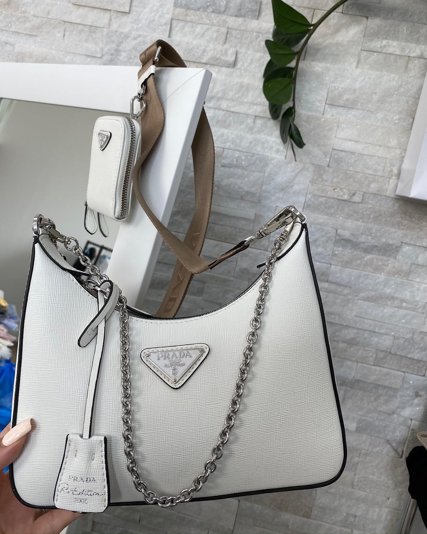Сумка женская Prada LUX-31165 – это изысканный аксессуар, выполненный в элегантном стиле. Классический белый цвет и узнаваемый треугольный логотип бренда Prada делают эту модель акцентной деталью любого образа. Сумка идеально подойдет для современных женщин, ценящих роскошь и функциональность. Благодаря компактным размерам и продуманному дизайну, она станет незаменимым спутником на каждый день или для особых случаев.