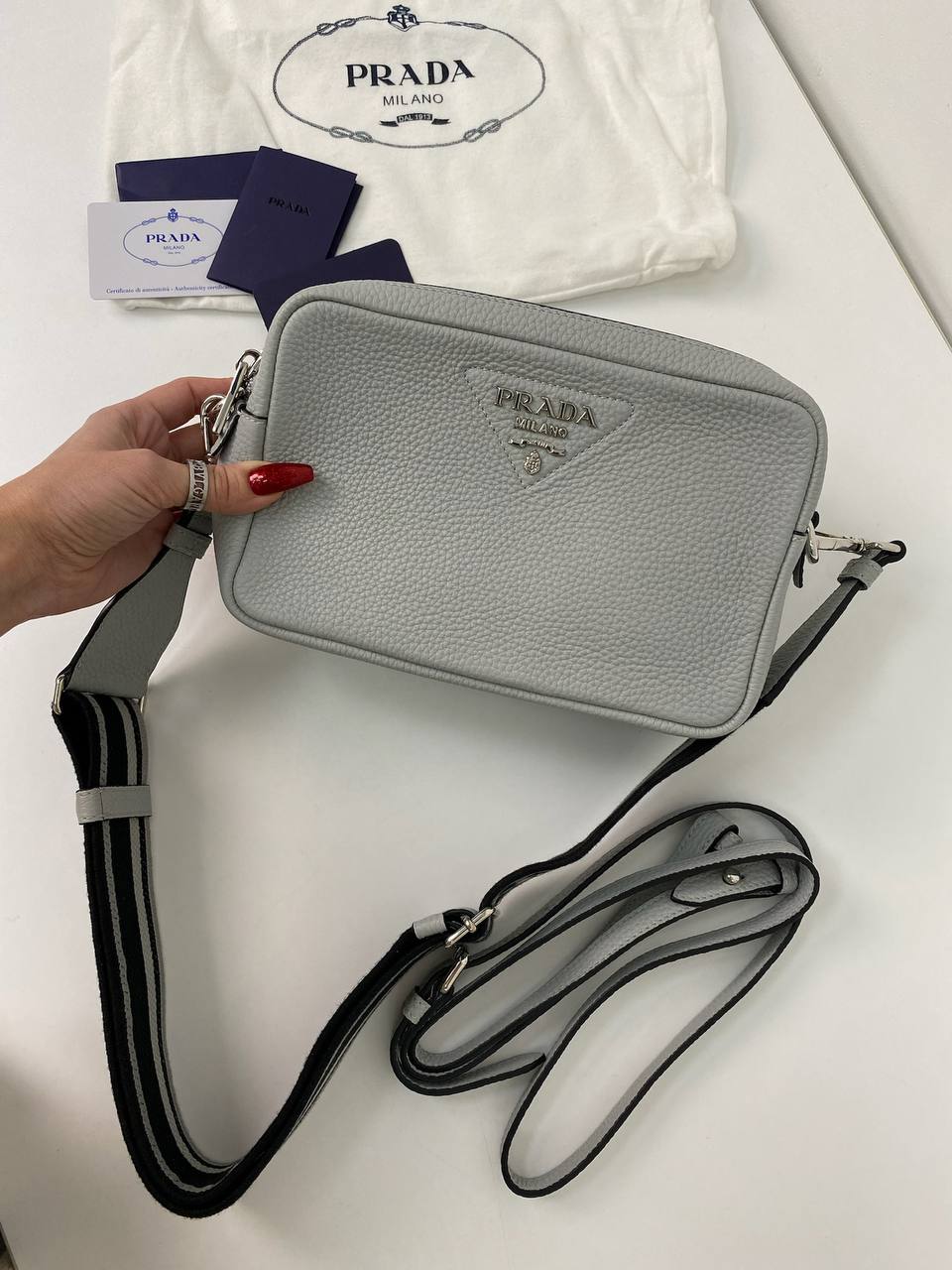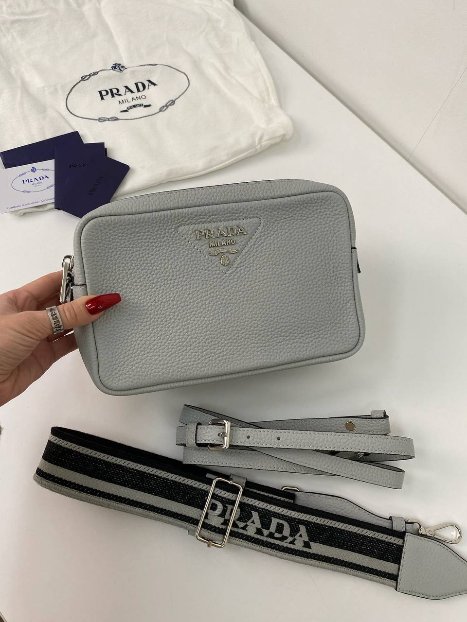 Сумка женская Prada LUX-82978, представленная на изображении, — это стильная сумка в светло-сером цвете. Сумка имеет прямоугольную форму и выполнена из материала с текстурированной поверхностью. Эта сумка идеально подходит для повседневного использования, дополняя любой образ.