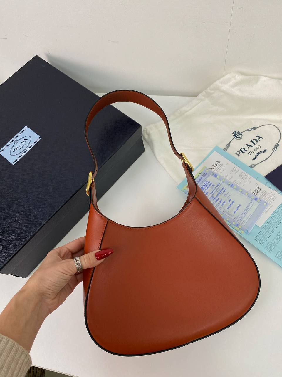 Сумка женская Prada LUX-82984 — это воплощение элегантности и стиля от известного бренда. Сумка выполнена в насыщенном рыжем цвете с плавными линиями и золотистой фурнитурой, подчеркивающими ее изысканный дизайн. Она идеально подходит для создания утонченных образов на каждый день.