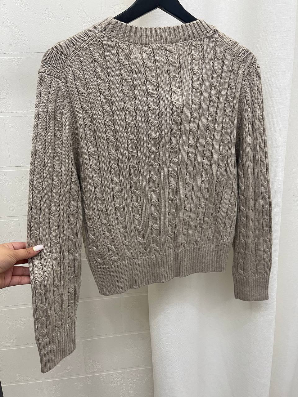 Свитер женский Prada LUX-95084 представляет собой элегантный предмет гардероба. Данный свитер выполнен в классическом стиле с узнаваемой текстурой в виде косичек. Бежевый цвет делает его универсальным для различных образов.