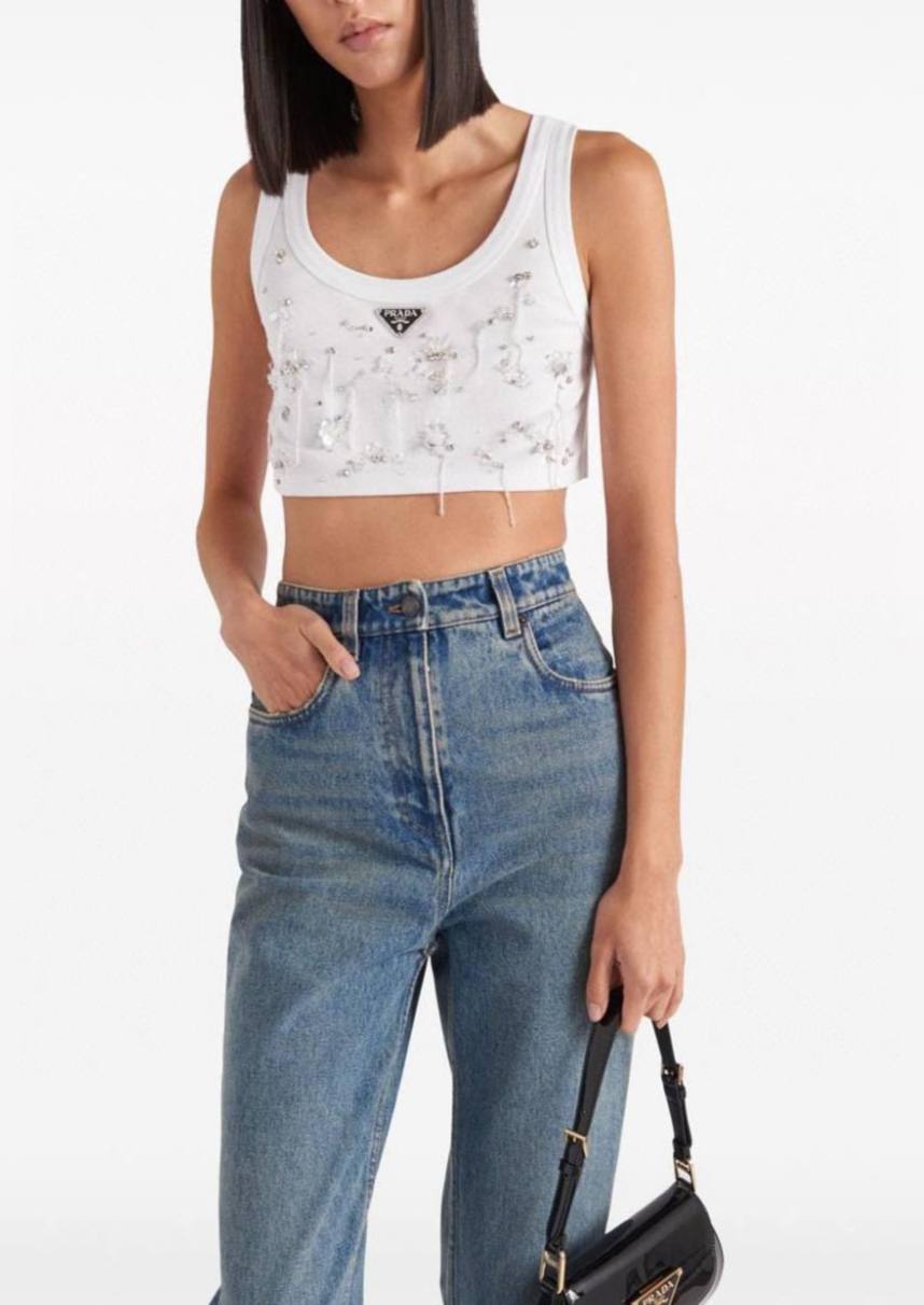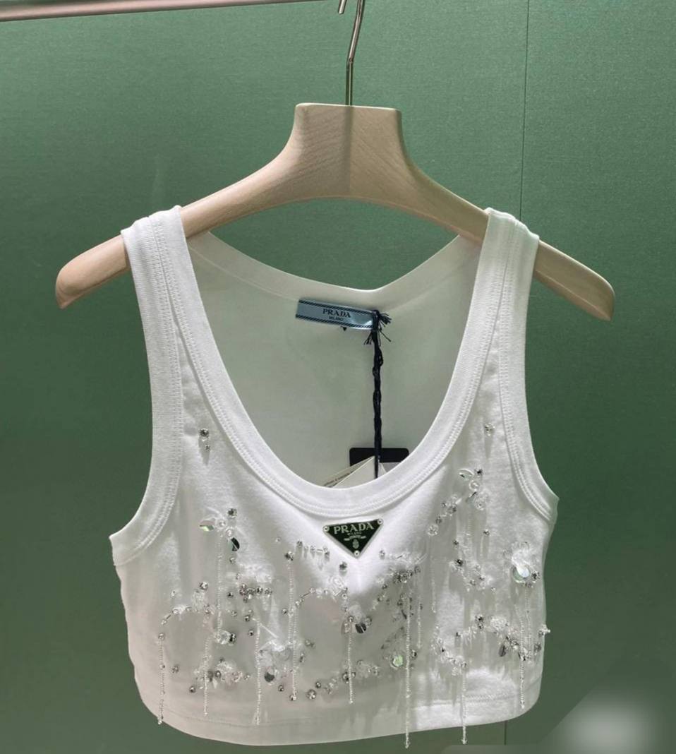 Топ Prada LUX-99325 – это стильный и утонченный предмет гардероба от известного бренда. Топ белого цвета, декорирован стразами и логотипом бренда, что добавляет ему изысканности. Этот топ предназначен для создания модных и элегантных образов.