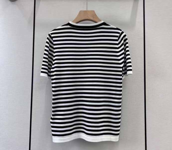 Трикотажная футболка Prada LUX-85938 представляет собой стильную и элегантную деталь гардероба. Эта футболка в полоску выполнена в классическом черно-белом цвете, что делает ее универсальной для различных образов. Текстура трикотажа обеспечивает комфорт и приятные ощущения при носке.