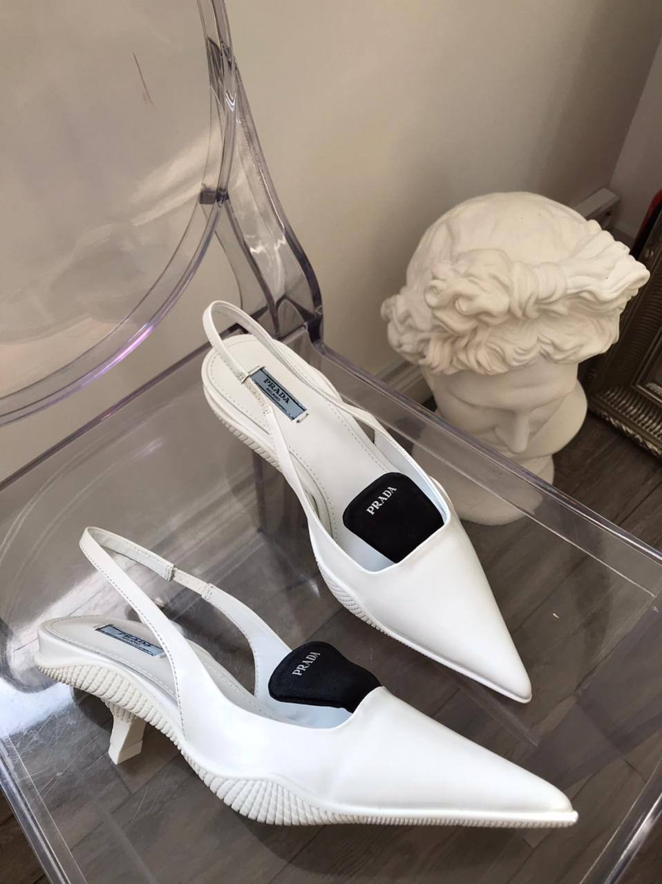 Эти элегантные белые туфли Prada LUX-48638 представляют собой сочетание классического стиля и современного дизайна. Модель с острым мысом и ремешком на пятке выполнена в минималистичном стиле, что делает ее универсальным дополнением к любому образу.