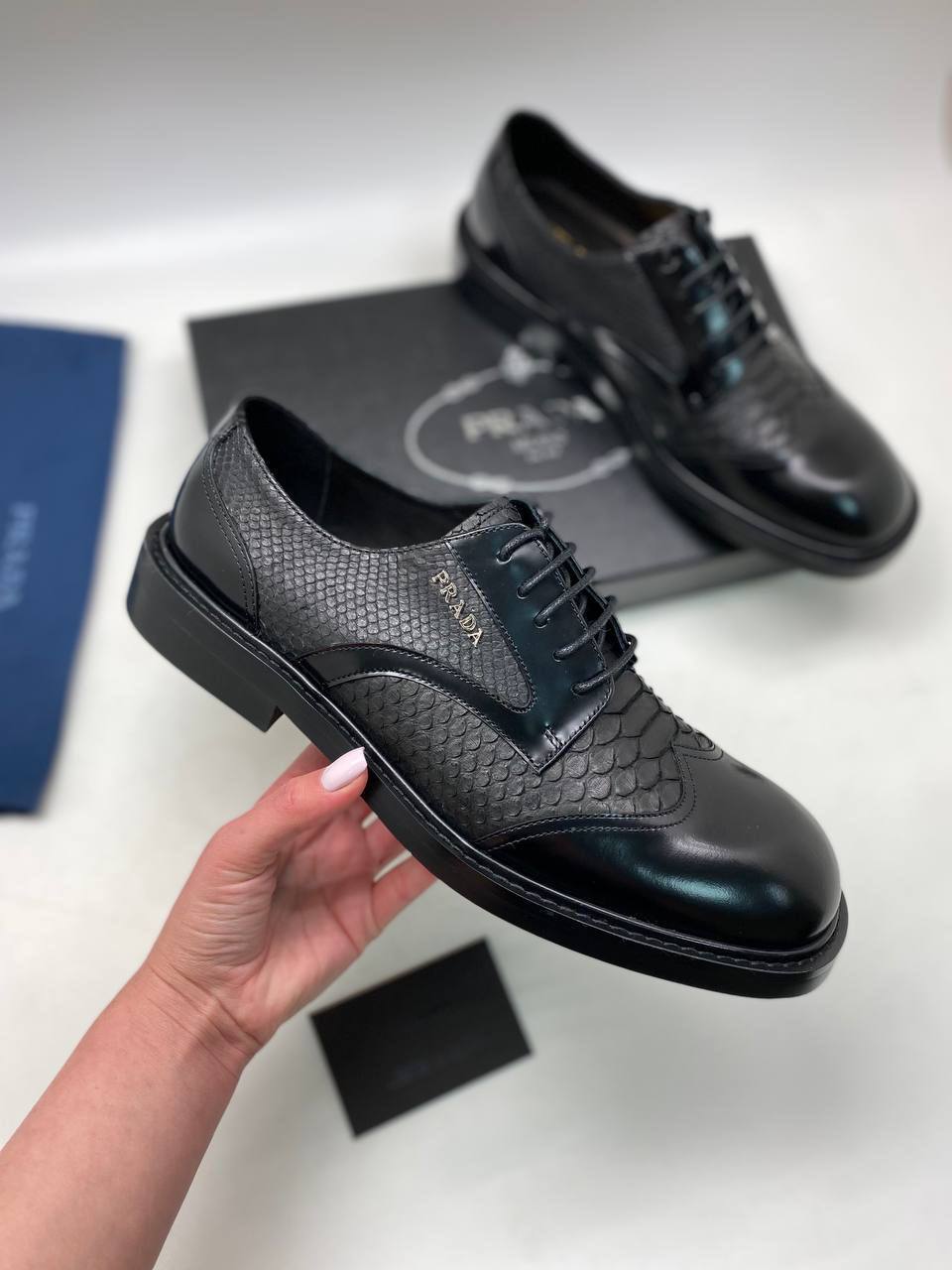 Туфли Prada LUX-77284 – это элегантные мужские туфли в классическом стиле. Модель выполнена в черном цвете, сочетающем глянцевую и текстурную отделку. Эти туфли идеально подойдут для создания стильных и запоминающихся образов.