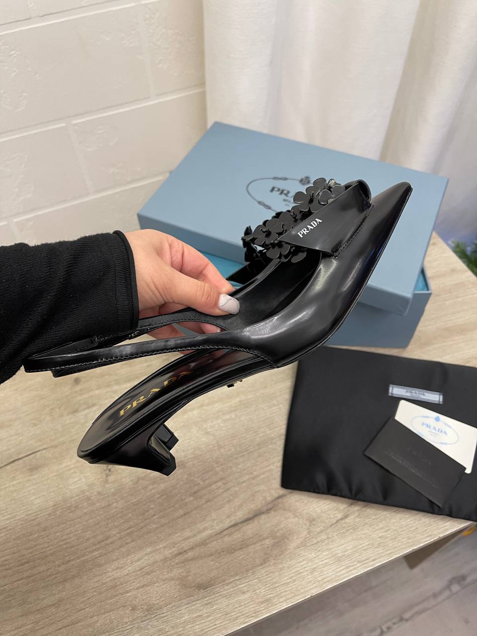 Туфли Prada LUX-100961 - это элегантная обувь в классическом стиле. Черный цвет, блестящая текстура, изящные формы и декоративный элемент делают их идеальным выбором для вечерних выходов и особых случаев.