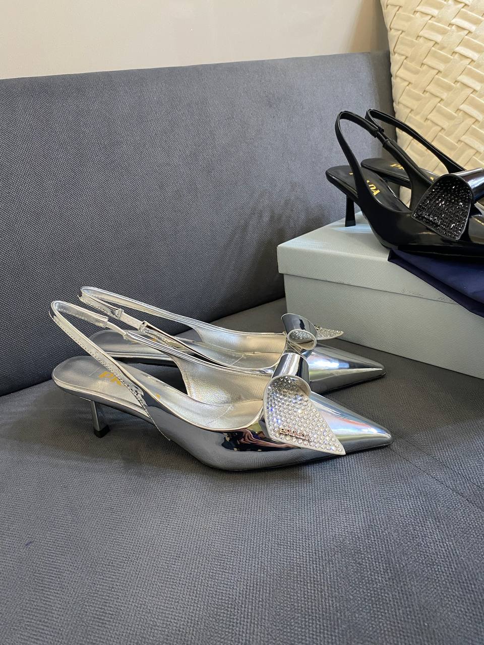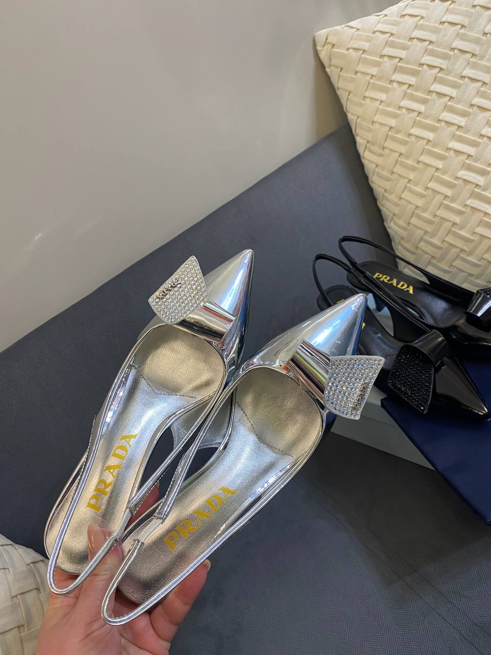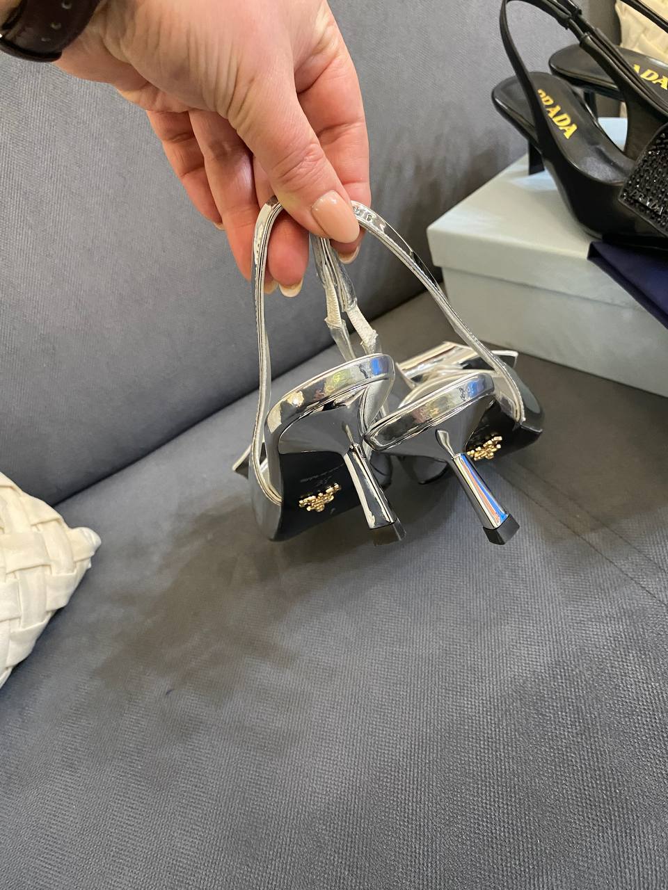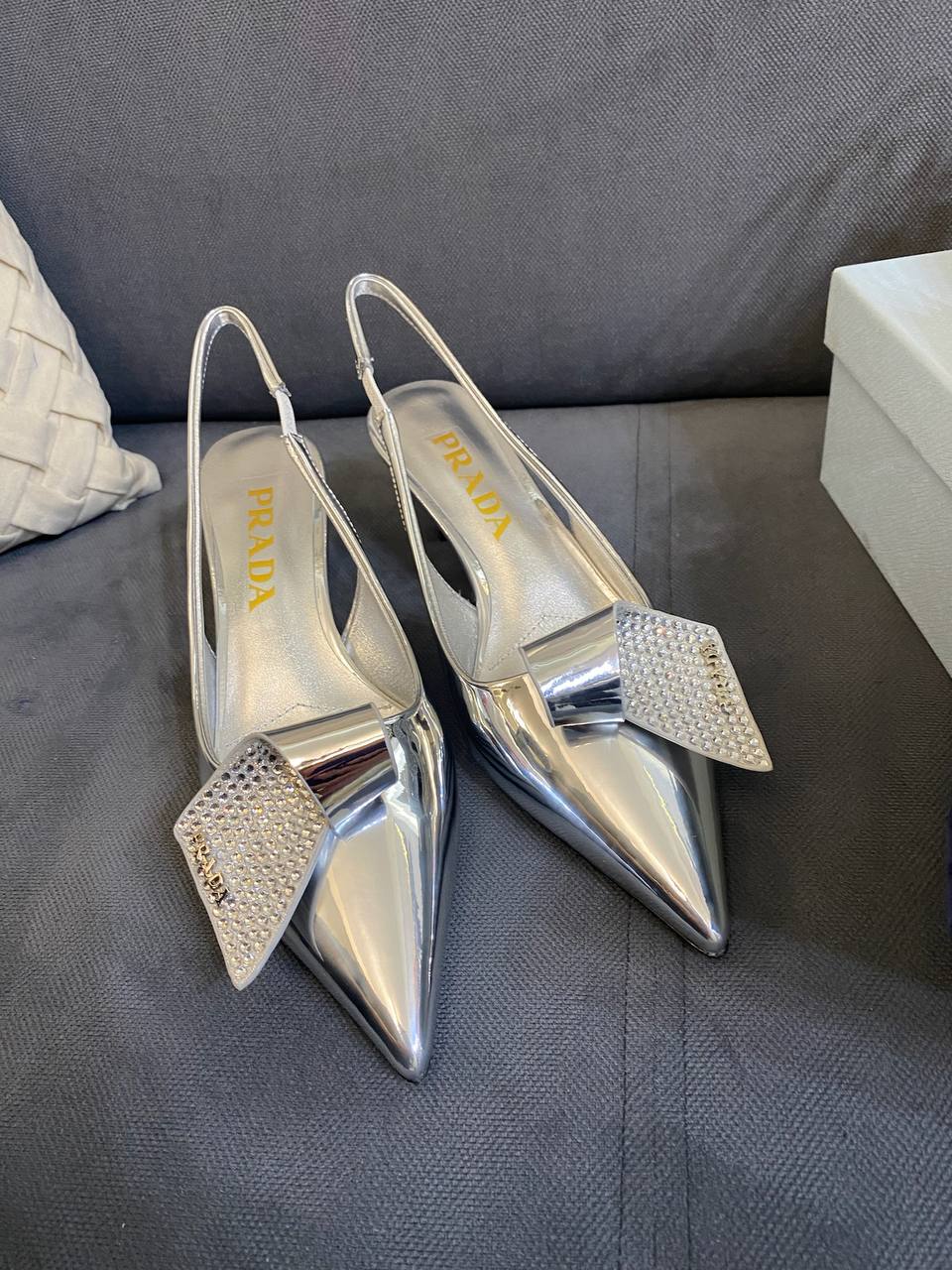 Туфли Prada LUX-102499 — это изящная и элегантная обувь, выполненная в серебристом цвете с блестящей текстурой. Дизайн туфель включает в себя острый носок и тонкий каблук. Они идеально подойдут для создания изысканного образа на различных мероприятиях.