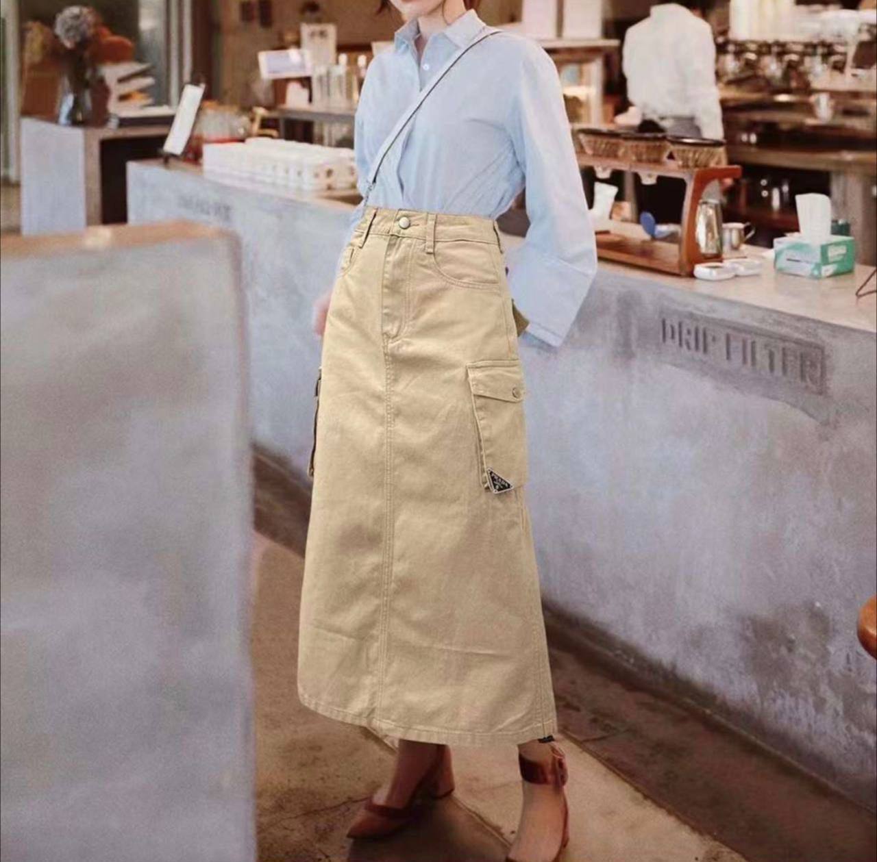 Юбка Prada LUX-89261 — это стильная юбка, сочетающая в себе практичность и элегантность. Юбка выполнена в песочном оттенке, который придает ей универсальность и легкость. Прямой силуэт с карманами добавляет функциональности и делает ее подходящей для различных образов.