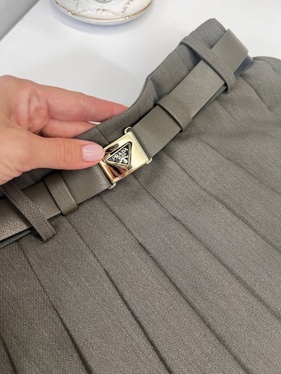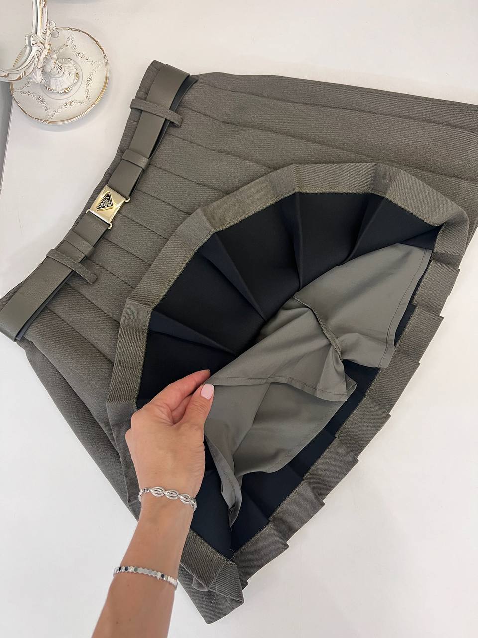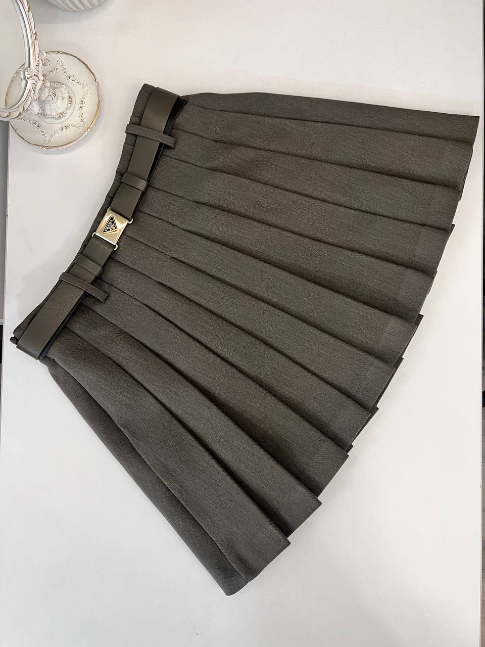 Юбка Prada LUX-109329 — это стильная плиссированная юбка цвета хаки, созданная для элегантных образов. Юбка имеет прямой крой и подчеркивает силуэт. Дополнена стильным ремнем с пряжкой с логотипом.