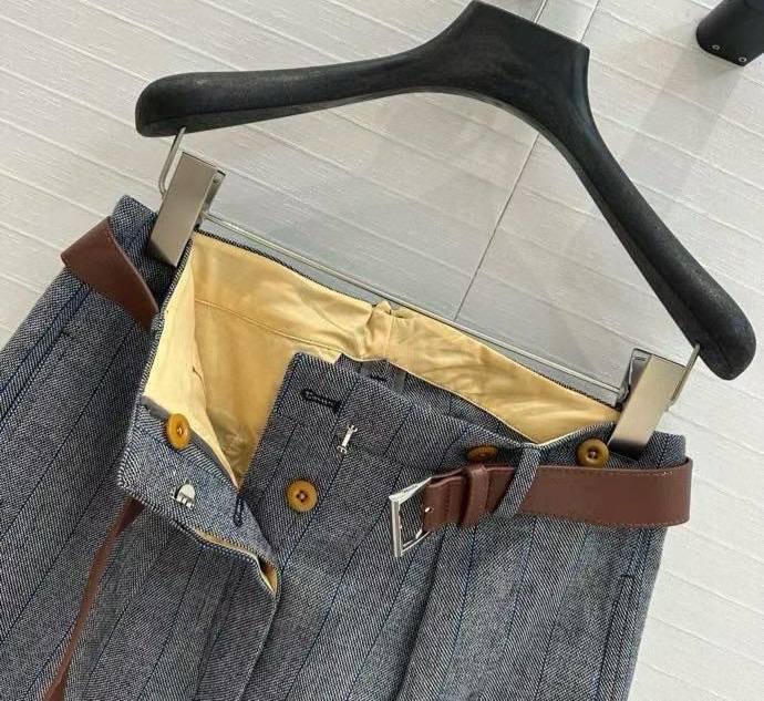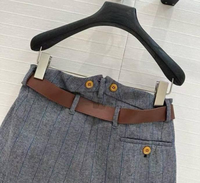 Юбка Prada LUX-116784 — это стильный предмет гардероба от известного бренда. Она выполнена в классическом стиле с акцентом на элегантность. Серый цвет юбки в сочетании с коричневым ремнем создает изысканный образ.