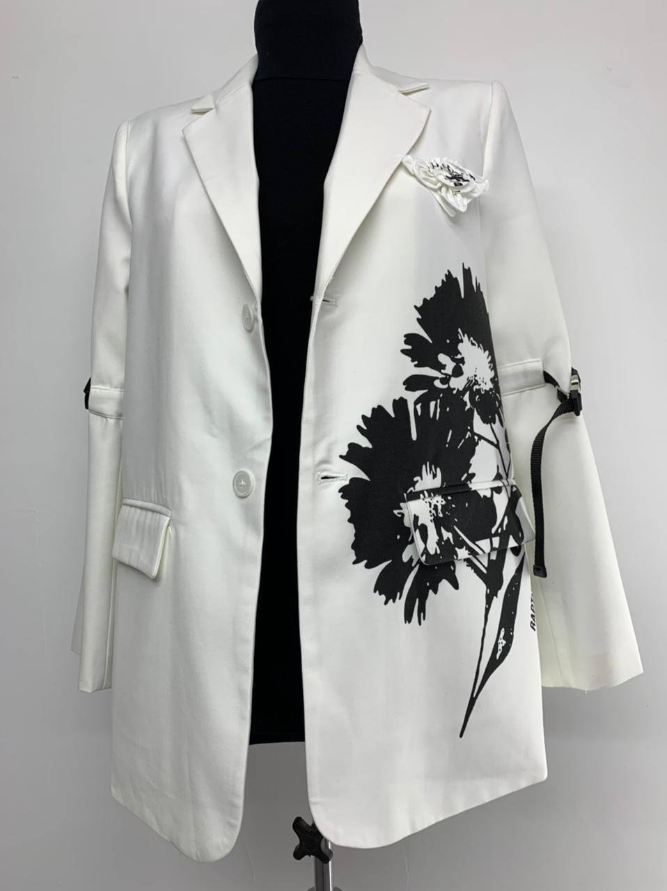 Стильный белый жакет Prada LUX-48848 с оригинальным принтом добавит изысканности вашему образу. Этот жакет сочетает классический крой с современными акцентами, делая его универсальным предметом гардероба. Он идеально подходит для создания как деловых, так и более расслабленных, но элегантных ансамблей.