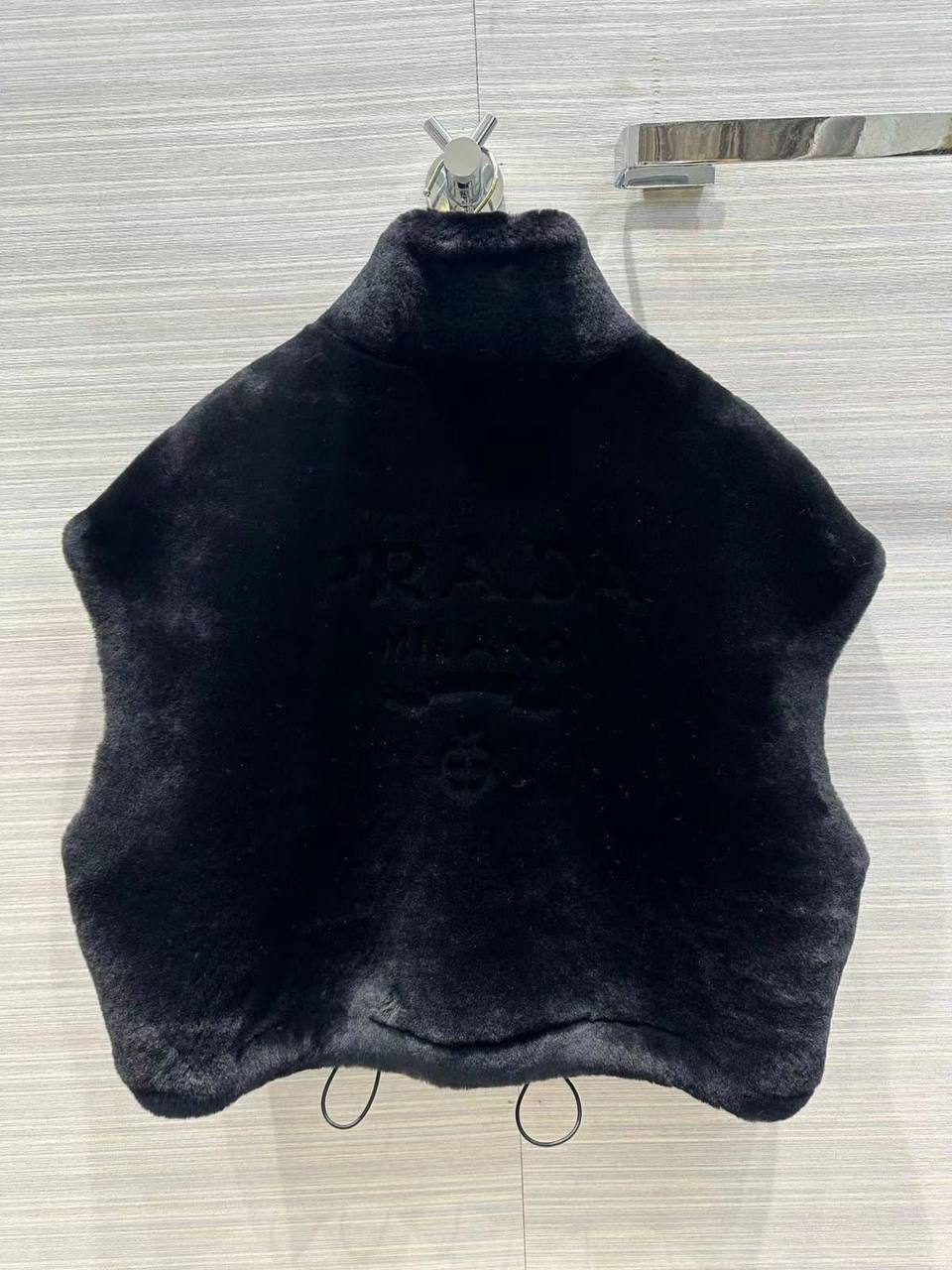 Жилет Prada LUX-96767 — это стильная и уютная модель для создания модных образов. Жилет выполнен в черном цвете, имеет объемную текстуру, короткий рукав и воротник-стойку. Он подойдет для повседневной носки, а также станет отличным дополнением к вечернему наряду.