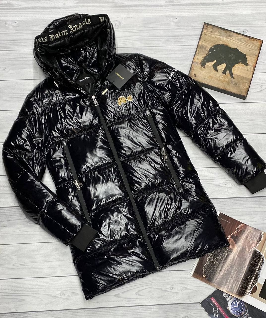Стильный черный глянцевый пуховик от Palm Angels — это идеальное решение для современных модников, желающих подчеркнуть свою индивидуальность. Модель LUX-60869 отличается оригинальным дизайном и высоким качеством исполнения, сочетая в себе комфорт и трендовый внешний вид. Этот пуховик станет незаменимой частью вашего зимнего гардероба, добавляя яркий акцент в любой образ.