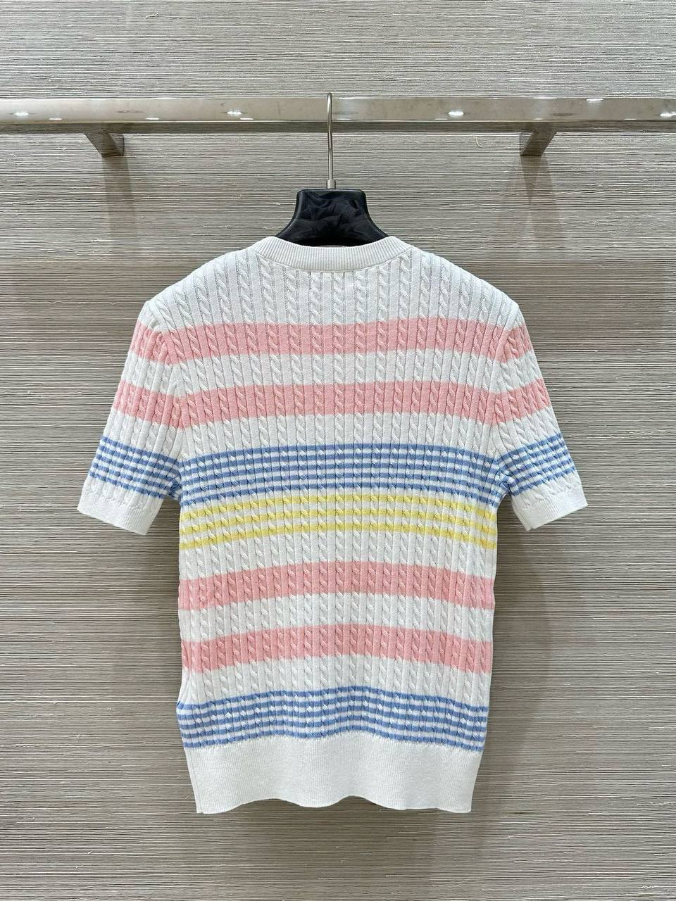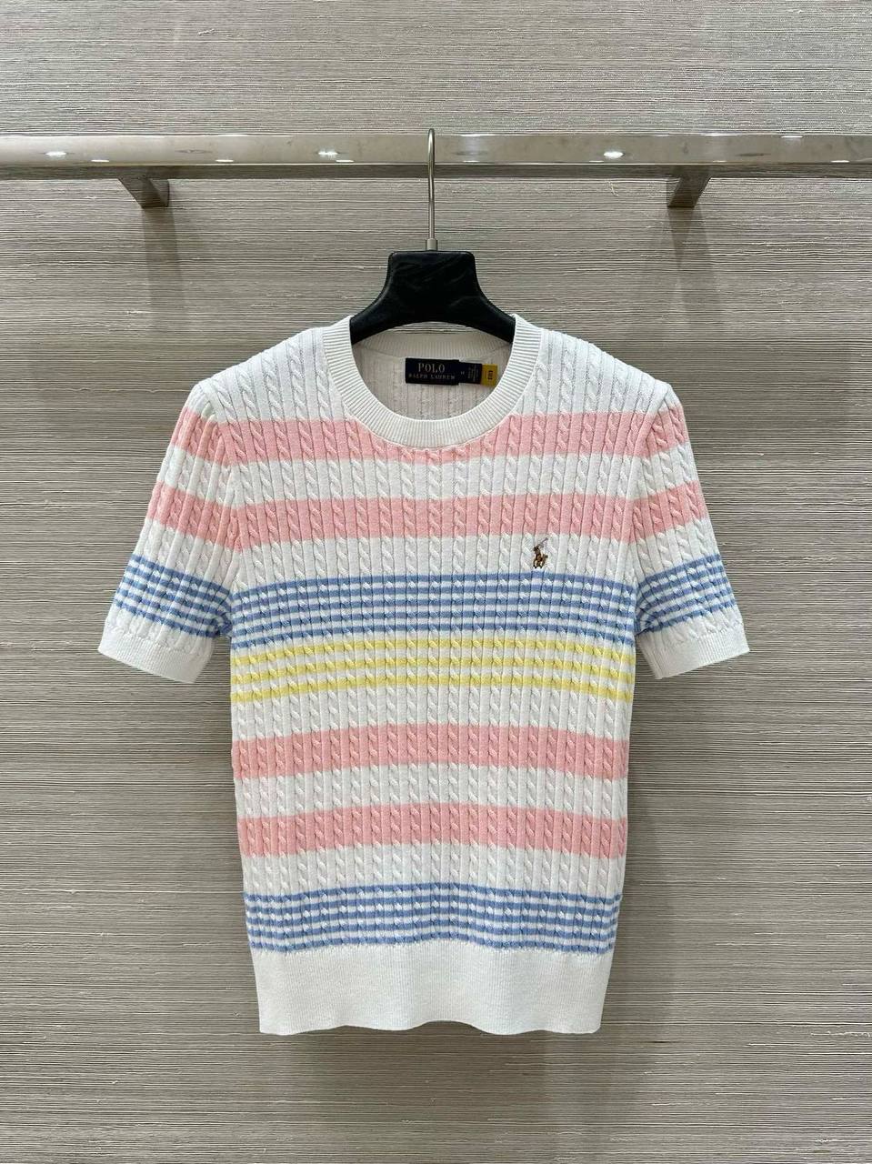Футболка Ralph Lauren LUX-118542 представляет собой стильный элемент гардероба, который отличается выразительным дизайном. Футболка выполнена в полоску с сочетанием белого, розового, голубого и желтого цветов, что придает ей яркий и летний вид. Она подойдет для создания как повседневных, так и более нарядных образов.