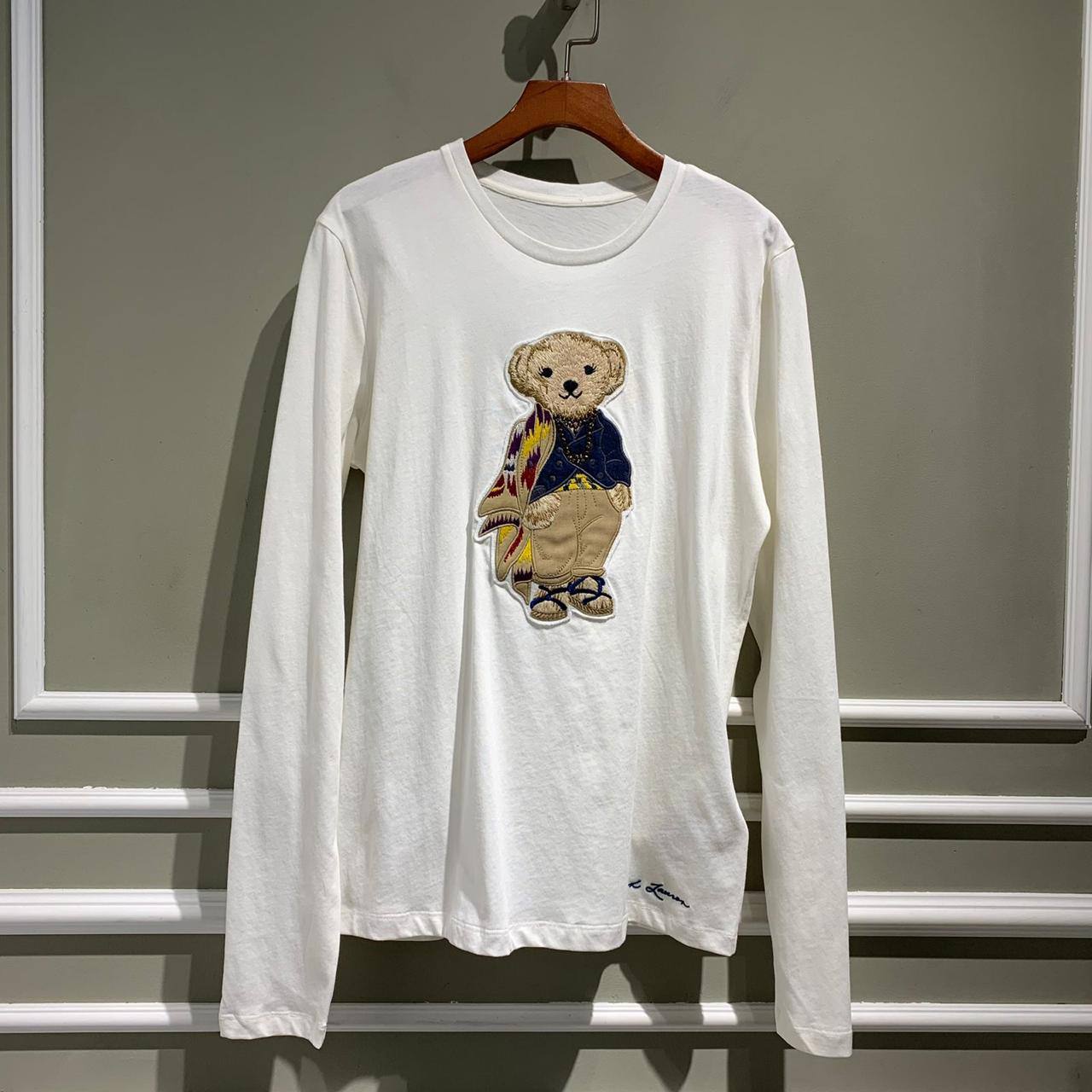 Лонгслив Ralph Lauren LUX-75341 — это стильный предмет гардероба от известного бренда. Он выполнен в классическом стиле, белого цвета, с изображением медведя на груди, что добавляет оригинальности. Идеально подходит для повседневной носки, легко сочетается с различной одеждой.
