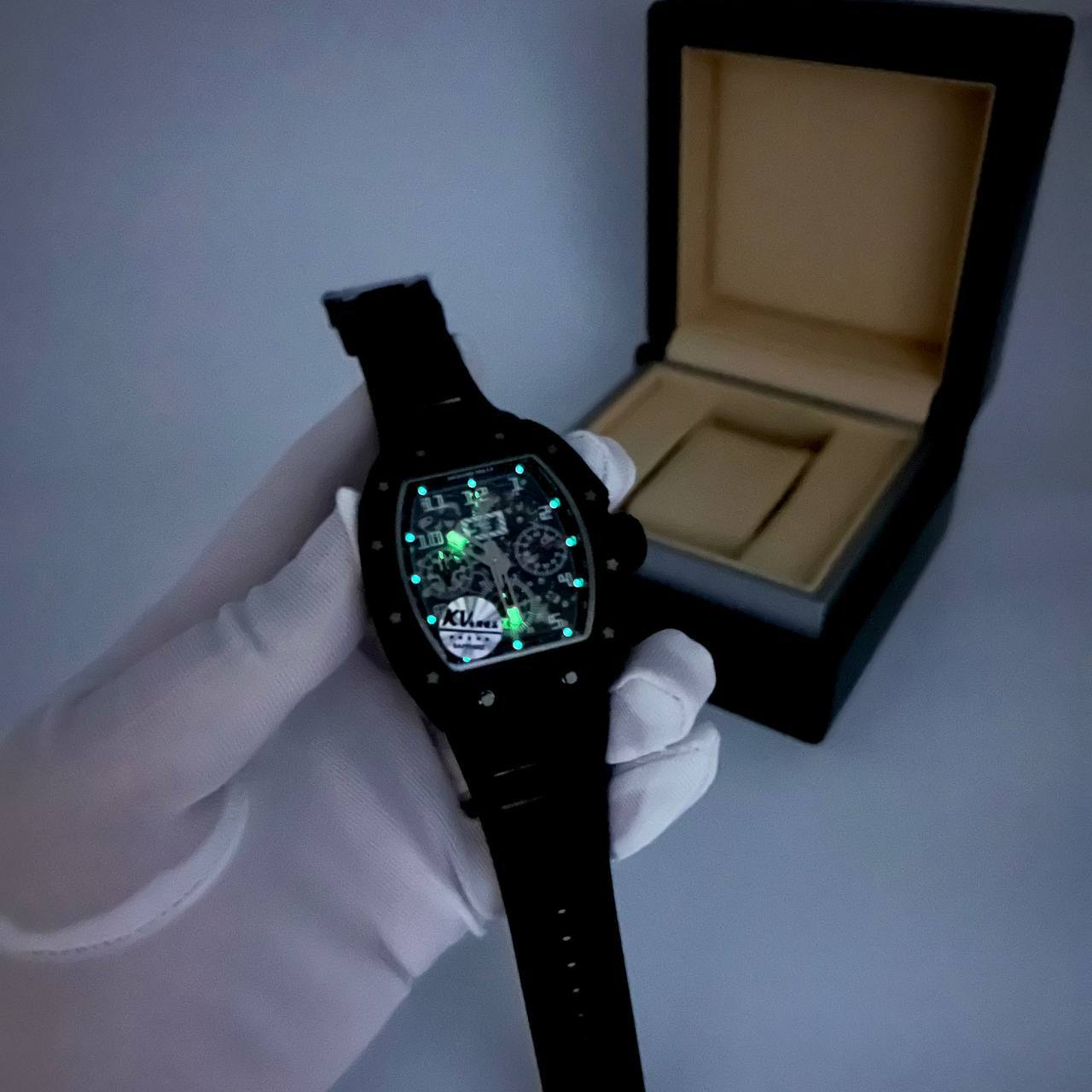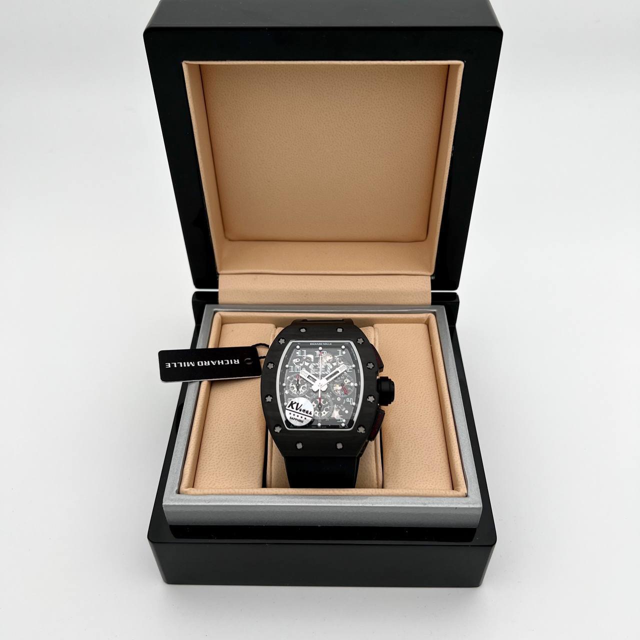 Часы Richard Mille LUX-84458 представляют собой элегантный аксессуар в спортивном стиле. Часы выполнены в черном цвете, с прозрачным циферблатом, демонстрирующим внутренний механизм. Подходят для тех, кто ценит эксклюзивный дизайн и функциональность.