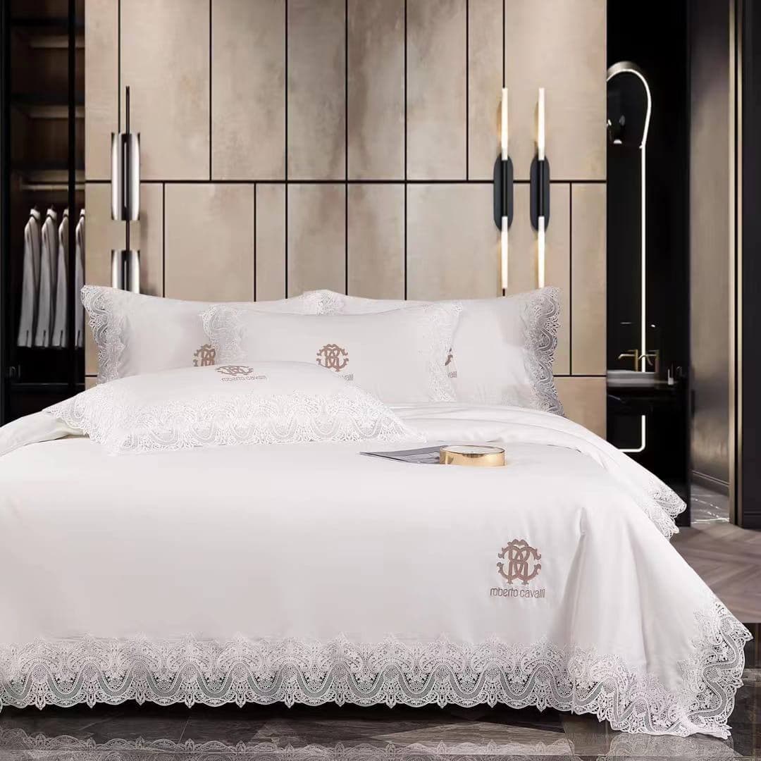 Комплект постельного белья Roberto Cavalli LUX-60028 представлен в изысканном дизайне, который подчеркивает роскошь и элегантность. Белый цвет в сочетании с тонким кружевом и фирменным логотипом бренда создает атмосферу утонченности и комфорта. Этот комплект привнесет в вашу спальню нотки эксклюзивности и станет центральным элементом интерьера.