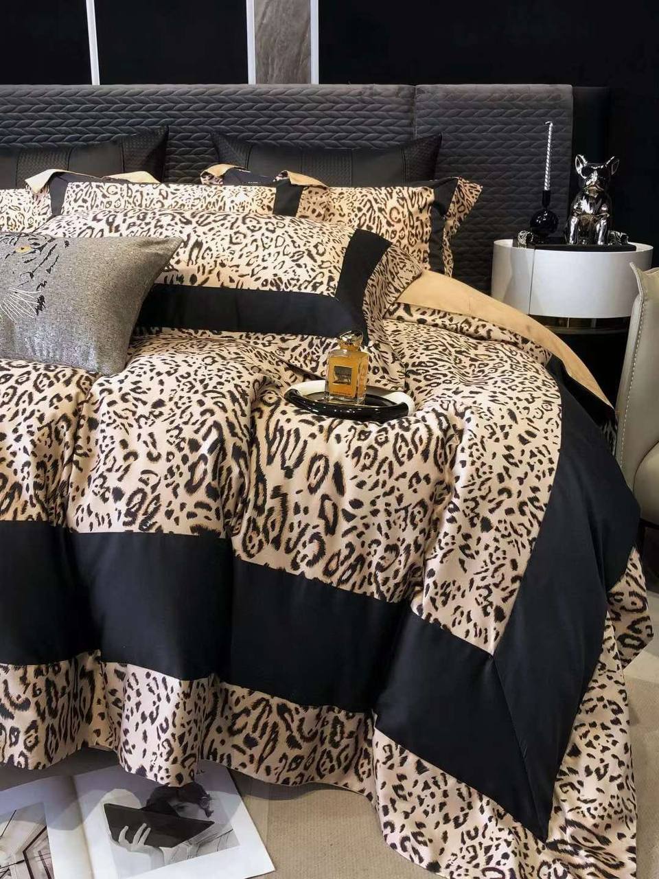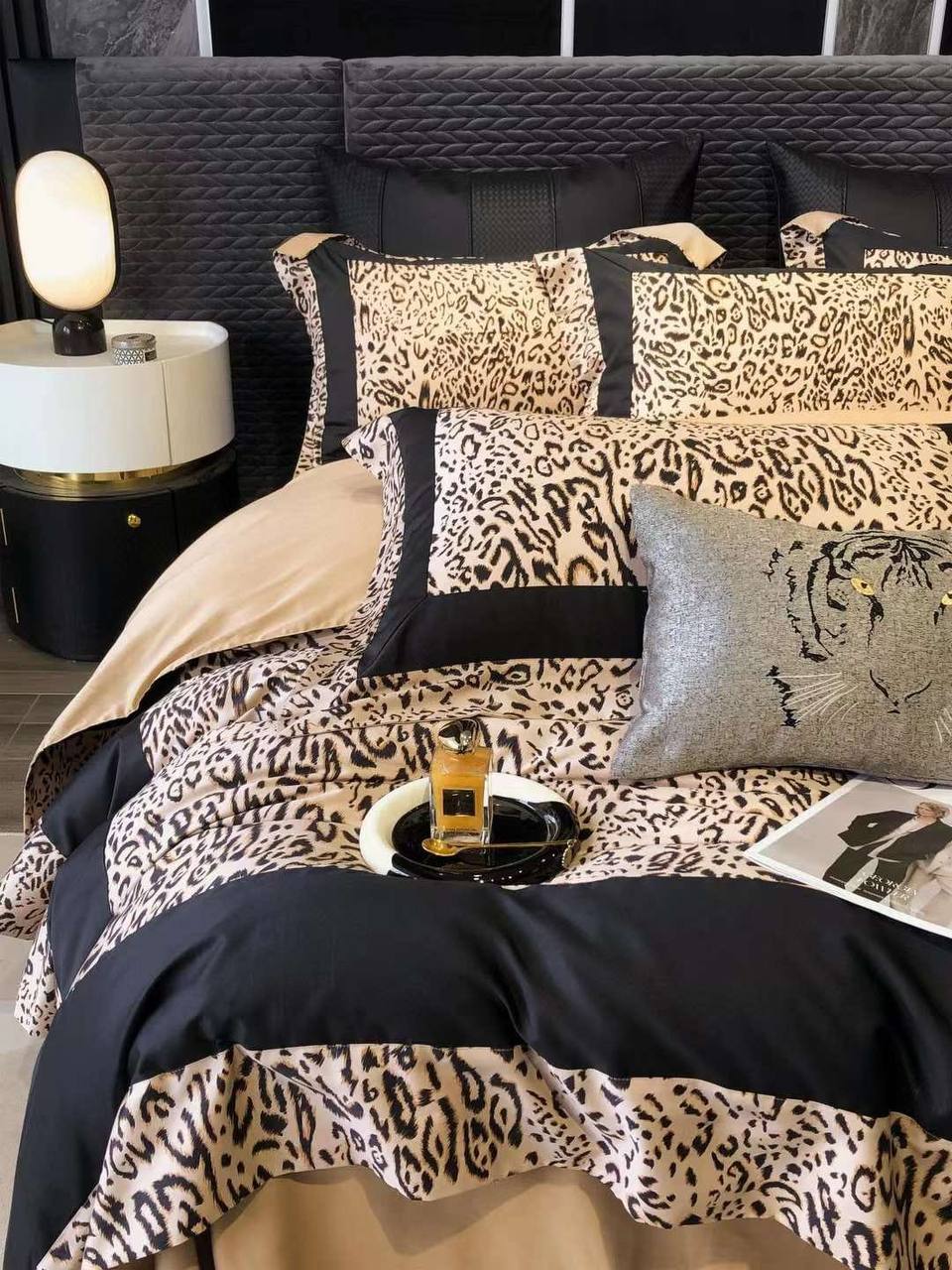 Комплект постельного белья Roberto Cavalli LUX-102717 — это воплощение роскоши и изысканности. Постельное белье выполнено в стиле гламур, сочетая в себе анималистичный принт и черные акценты, создавая эффектный и современный образ. Идеально подходит для создания элегантной и комфортной спальни.