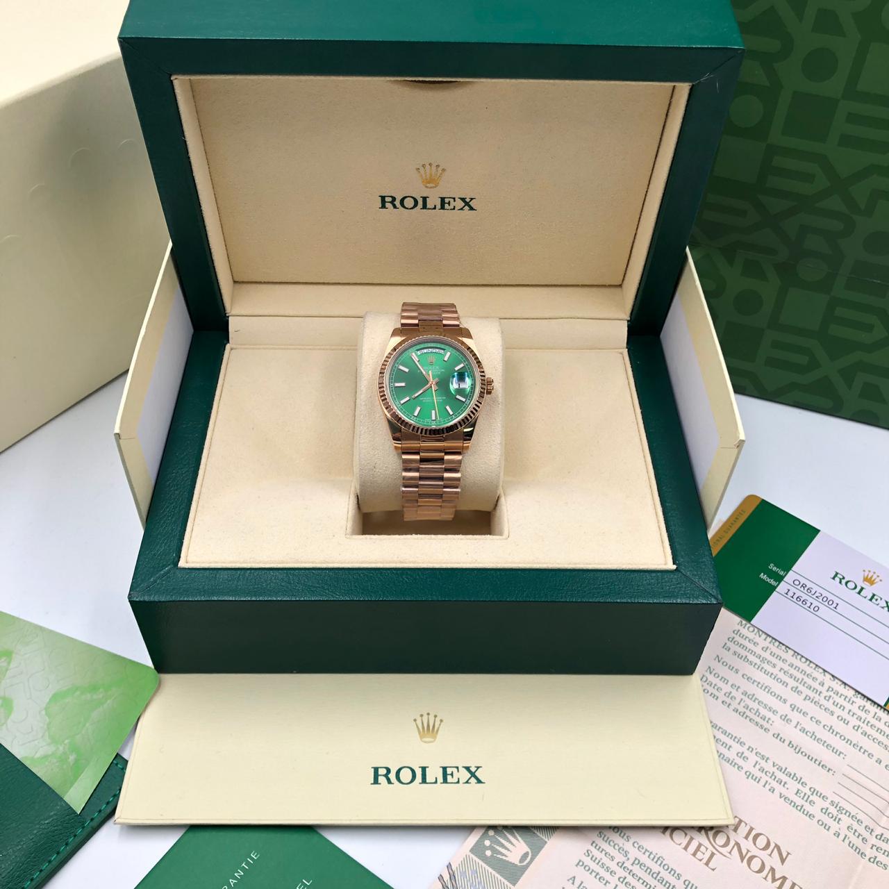 Rolex Часы LUX-11383 — это элегантные мужские часы, выполненные в классическом стиле, которые подчеркнут статус и изысканный вкус владельца. Яркий зеленый циферблат, дополненный римскими цифрами и окошком даты, выглядит эффектно и утонченно. Корпус и браслет цвета розового золота придают часам роскошный вид, делая их идеальным аксессуаром как для деловых встреч, так и для торжественных мероприятий.