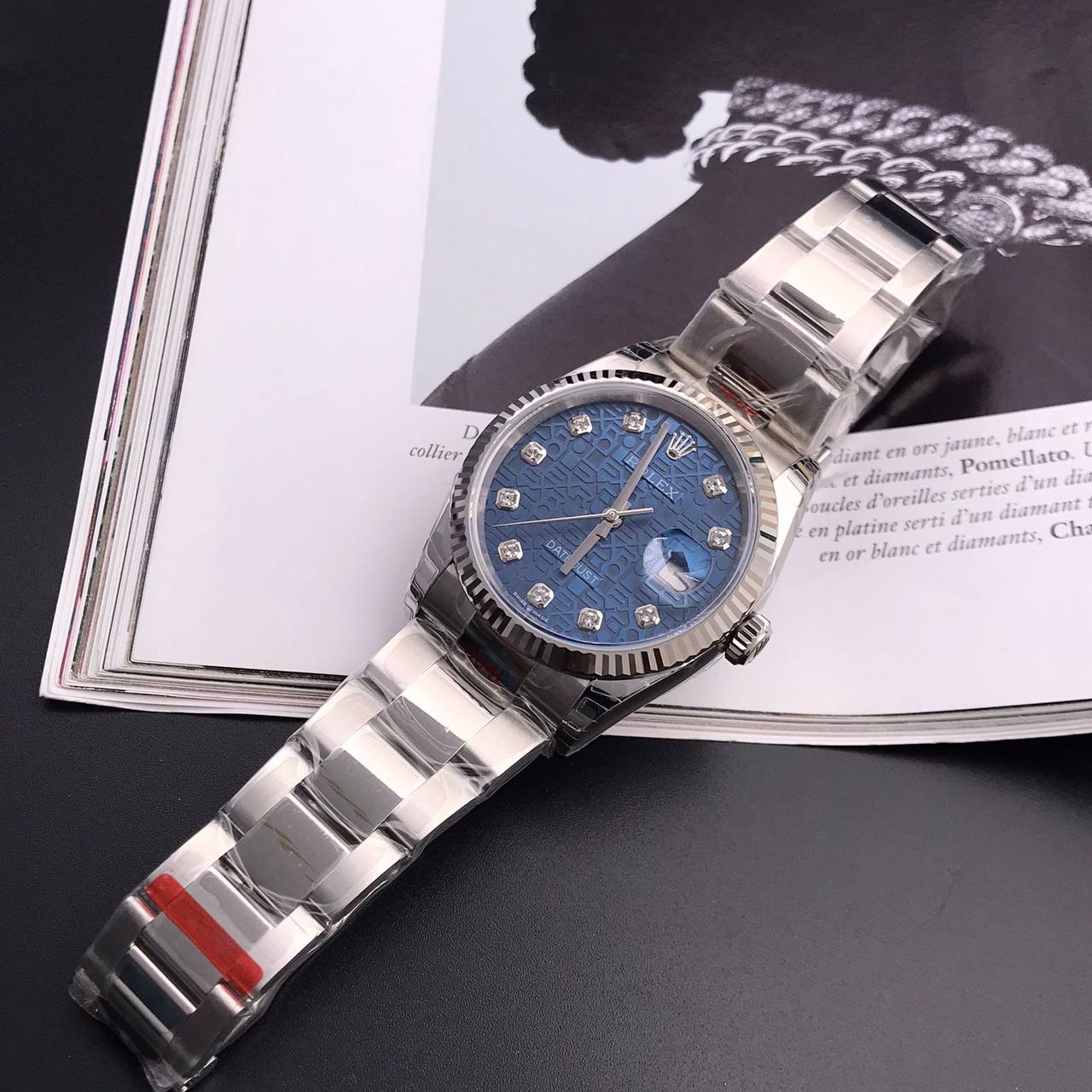 Часы Rolex LUX-79468 — это элегантные часы, сочетающие в себе роскошь и функциональность. Серебристый корпус и браслет прекрасно дополняют синий циферблат с декоративным узором и бриллиантами. Часы предназначены для мужчин, ценящих стиль и качество.