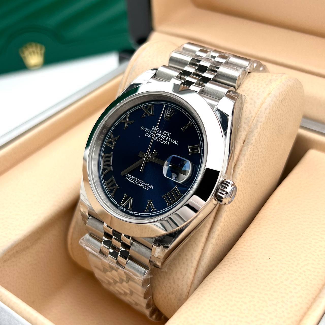 Часы Rolex LUX-90423 – это воплощение элегантности и стиля. Классический дизайн с синим циферблатом и серебристым браслетом идеально подходит для повседневной носки и особых случаев. Часы выглядят роскошно и привлекают внимание своим безупречным исполнением.