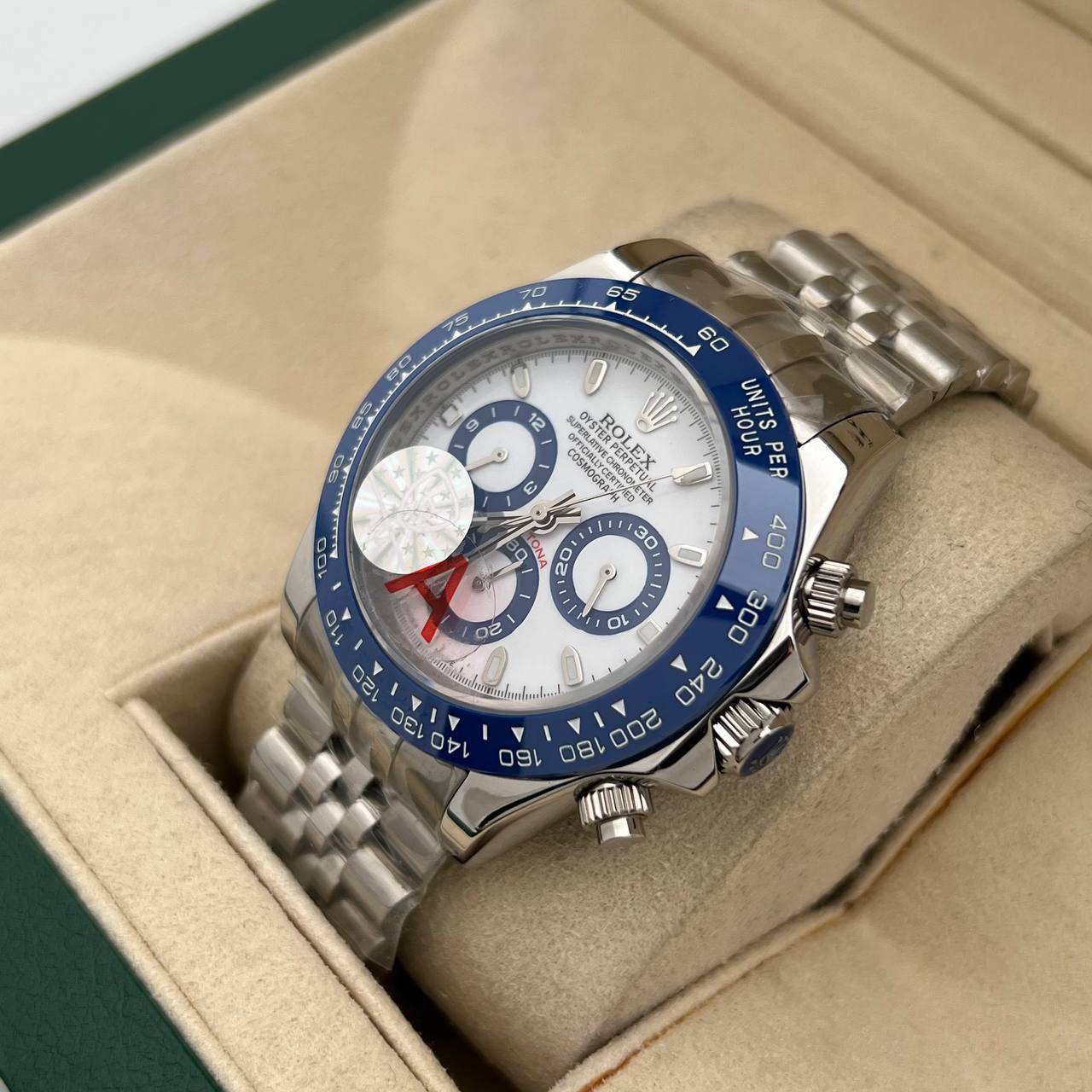 Часы Rolex LUX-101894 представляют собой элегантный аксессуар для мужчин. Яркий и выразительный дизайн часов выделяет их из толпы. Белый циферблат с контрастными синими и красными элементами гармонично сочетается с металлическим браслетом, создавая современный и стильный образ.