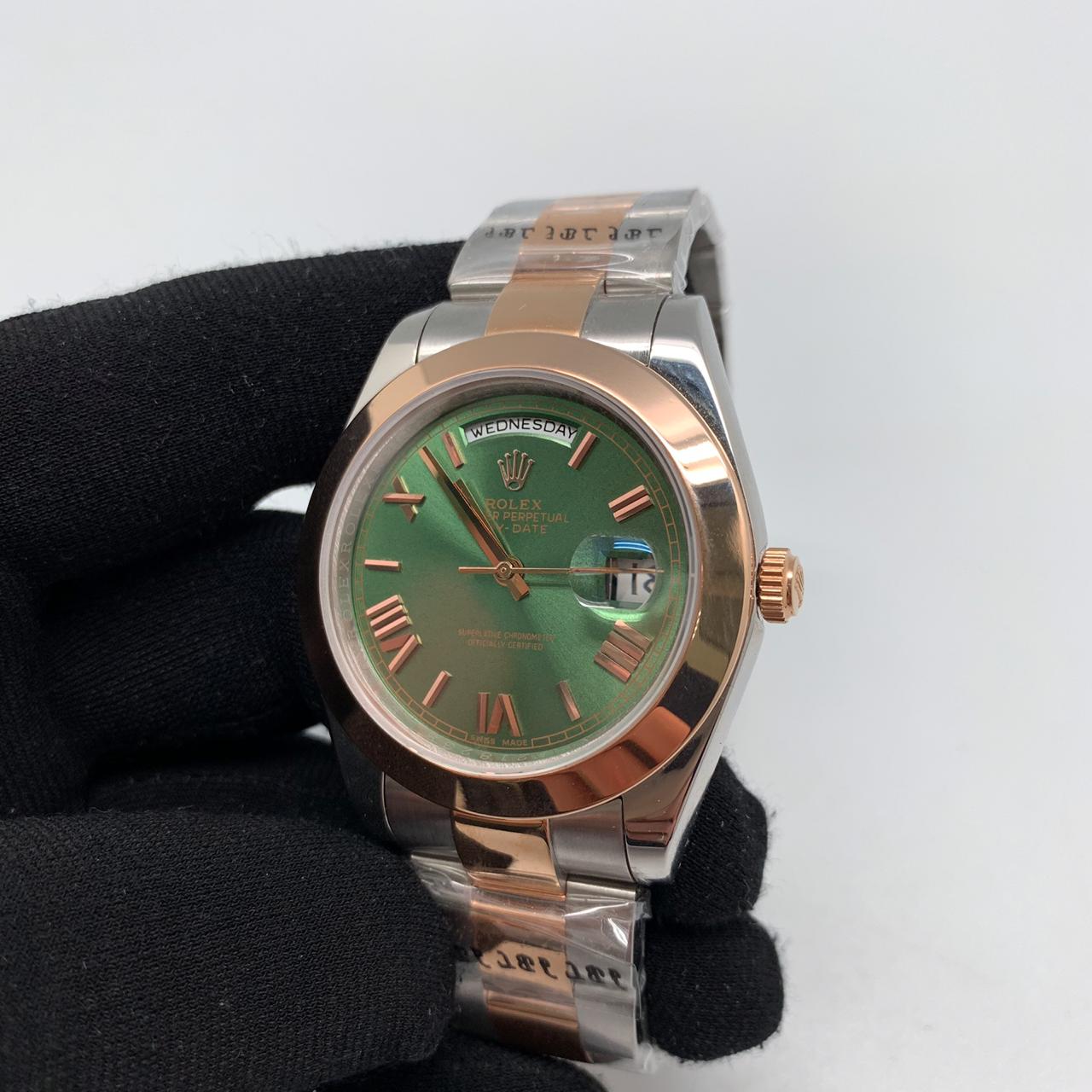 Часы мужские Rolex LUX-11122 представляют собой элегантное сочетание классического дизайна и современных материалов, выполненные в стиле роскошных швейцарских часов. Зеленый циферблат с римскими цифрами и окошками даты и дня недели придает часам изысканный вид.