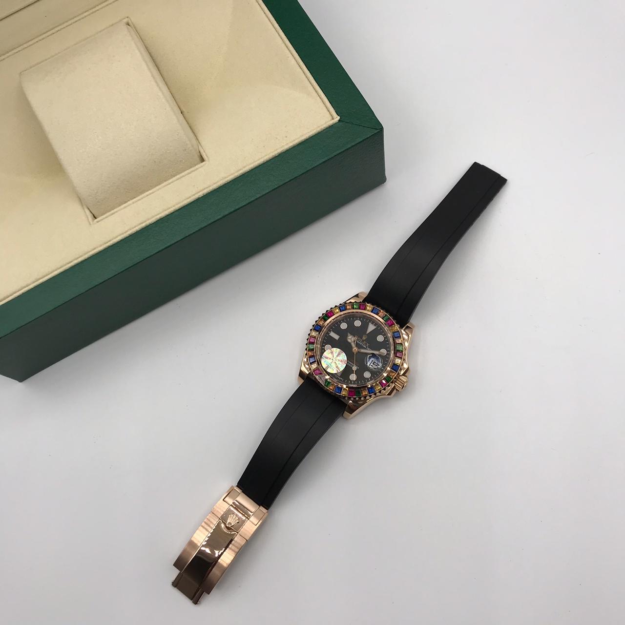 Женские часы Rolex LUX-14549 – это воплощение элегантности и роскоши, идеально подходящее для современной женщины. Изысканный дизайн с инкрустацией разноцветными камнями по безелю и классический черный циферблат делают этот аксессуар по-настоящему уникальным. Модель сочетает в себе премиальное качество и безупречный стиль.