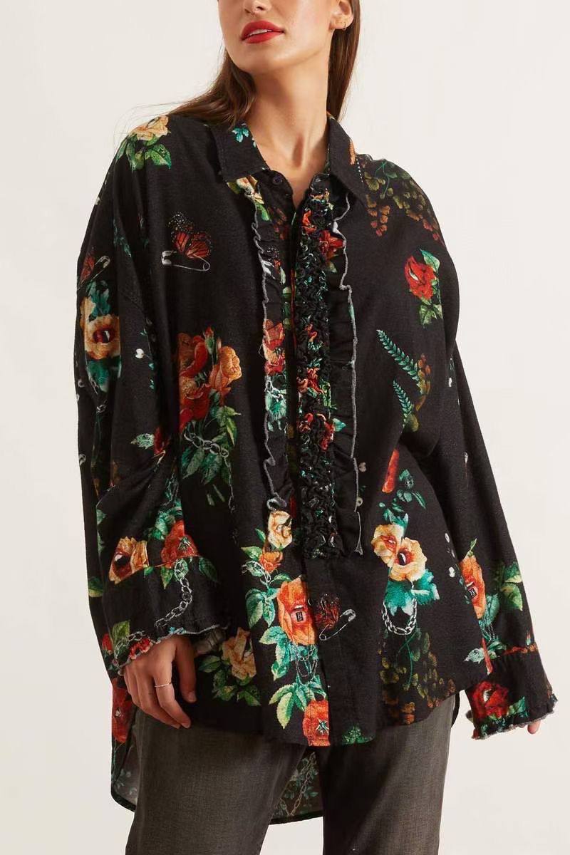 Эта рубашка LUX-68734 от бренда Luxe Crime представляет собой стильное и женственное изделие с уникальным цветочным принтом. Модель выполнена в стиле "casual" и отлично подойдет для создания повседневных образов. Оригинальный дизайн с оборками и акцентным принтом делает эту рубашку заметной деталью гардероба.