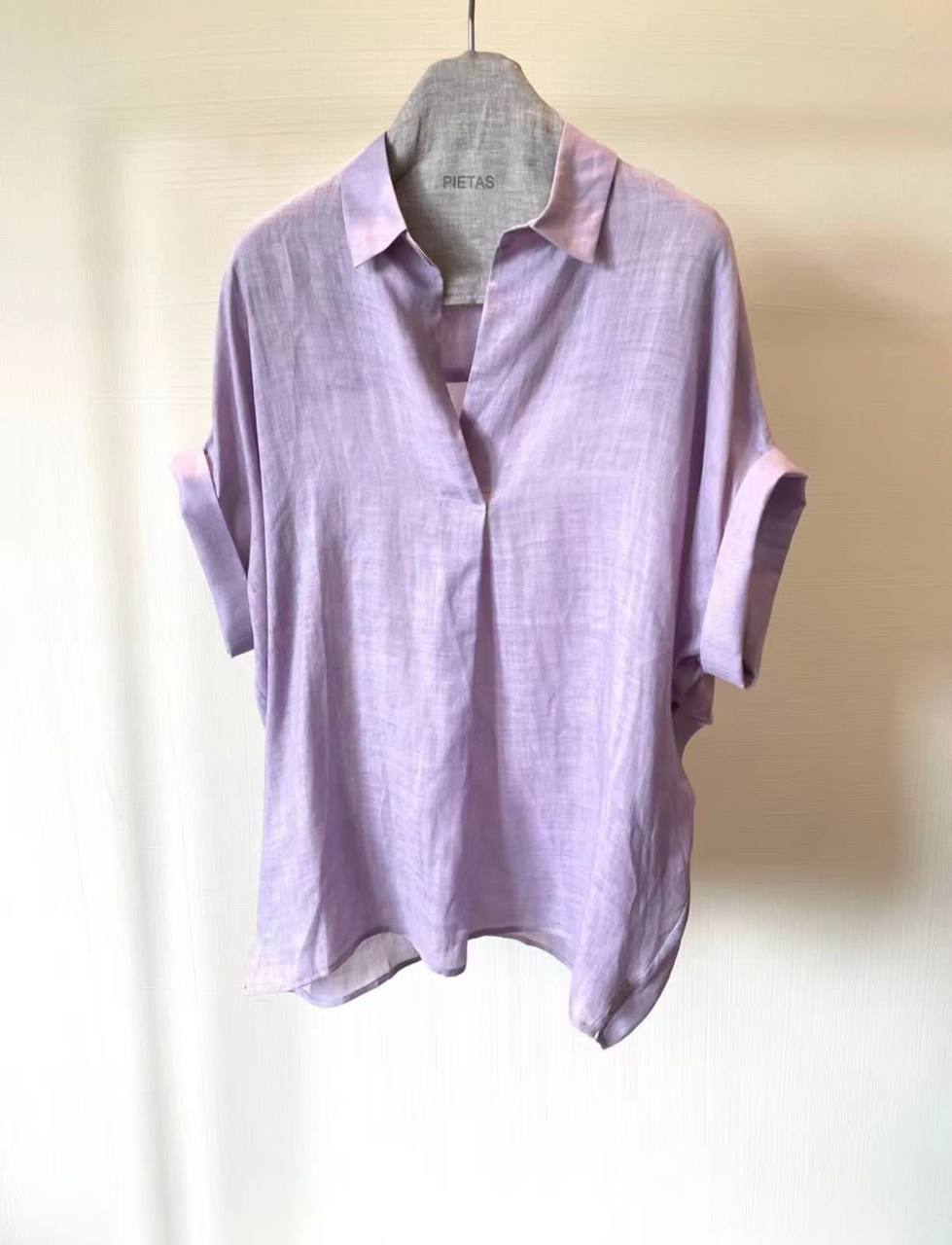 Рубашка LUX-72301 - это легкая рубашка в расслабленном стиле от бренда Pietas, выполненная в приятном лавандовом оттенке. Она имеет свободный крой с короткими рукавами и V-образным вырезом, что делает ее идеальным выбором для теплой погоды и повседневного гардероба. Ткань выглядит слегка прозрачной, что добавляет изделию легкости и воздушности.