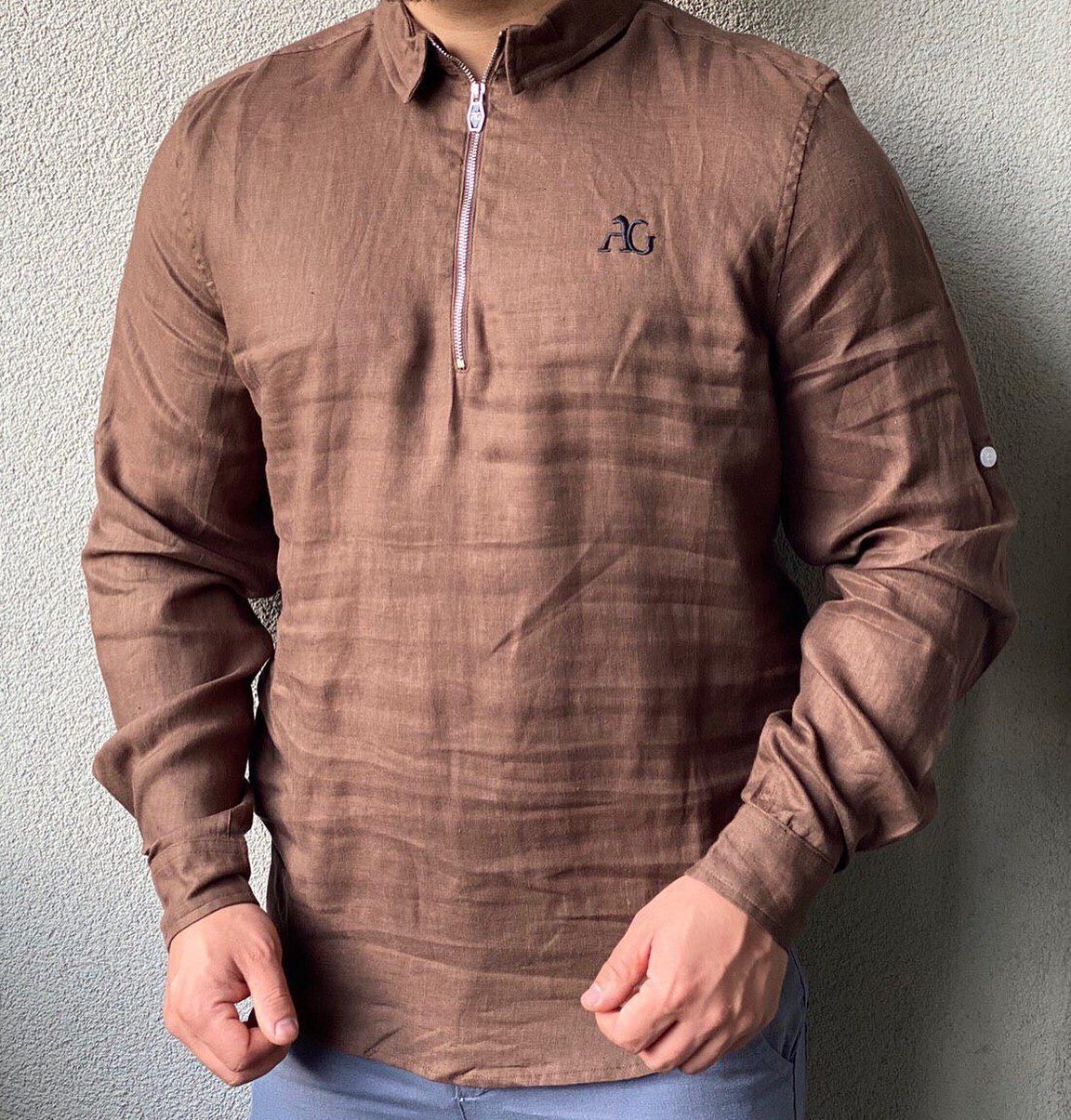 Представленная модель — рубашка с длинным рукавом от бренда AG, выполненная в современном и лаконичном стиле. Рубашка отличается удобным полуприлегающим силуэтом и детализацией в виде молнии на вороте, что придает ей актуальный вид. Логотип бренда discreetly вышит на груди, подчеркивая оригинальность изделия.