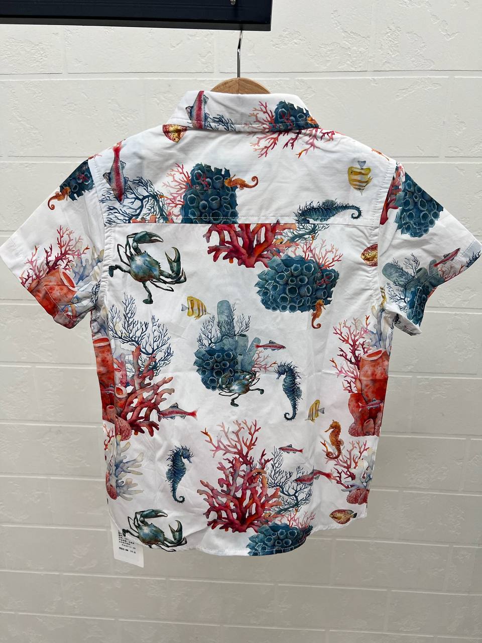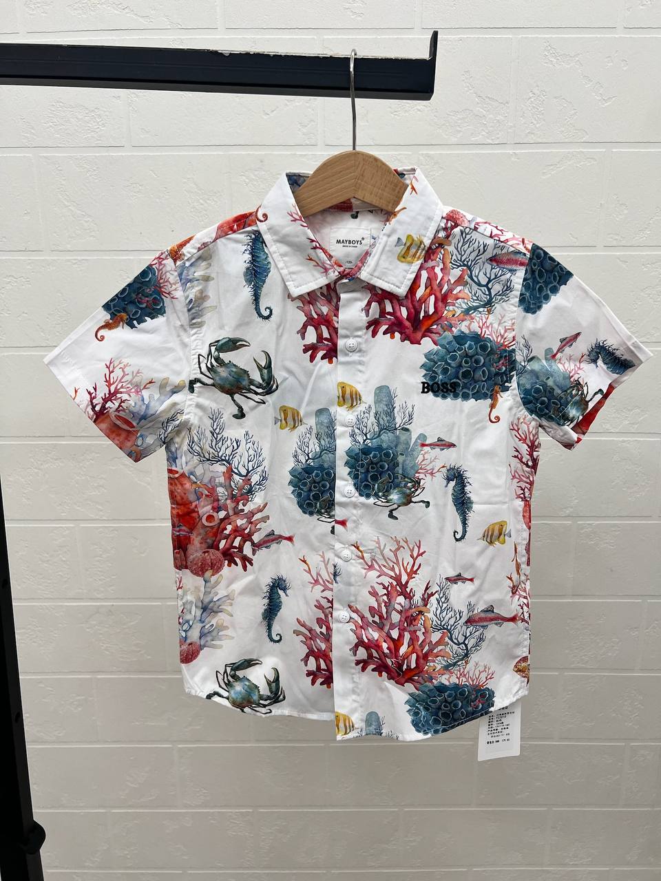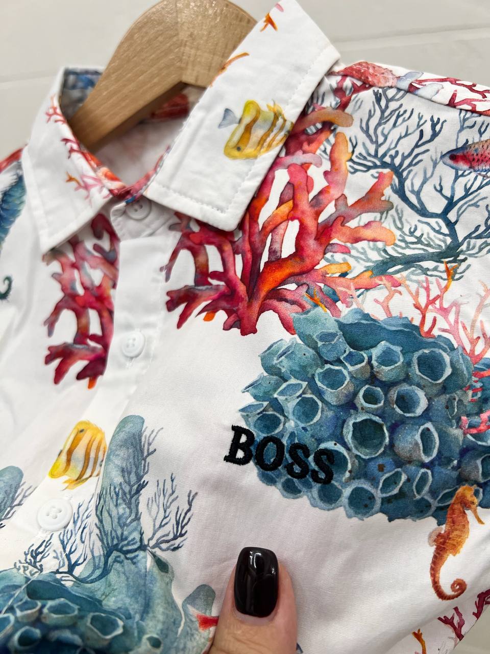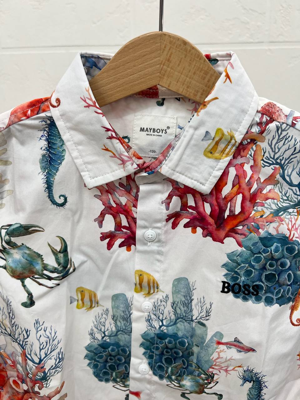 Рубашка MAYBOYS LUX-108365 представляет собой стильную летнюю рубашку с короткими рукавами, выполненную в белом цвете и украшенную ярким принтом с изображением морской флоры и фауны. Это рубашка, которая идеально подходит для создания летних образов, сочетая в себе комфорт и оригинальный дизайн.