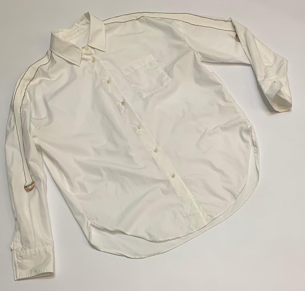 Белая рубашка LUX-46242 от бренда LUXE-CRIME представляет собой стильный предмет гардероба. Классический крой с воротником и пуговицами дополнен оригинальными деталями в виде декоративной отстрочки и металлических колец на рукавах, что придает ей современный и элегантный вид. Эта рубашка идеально подойдет как для повседневных, так и для более официальных образов.
