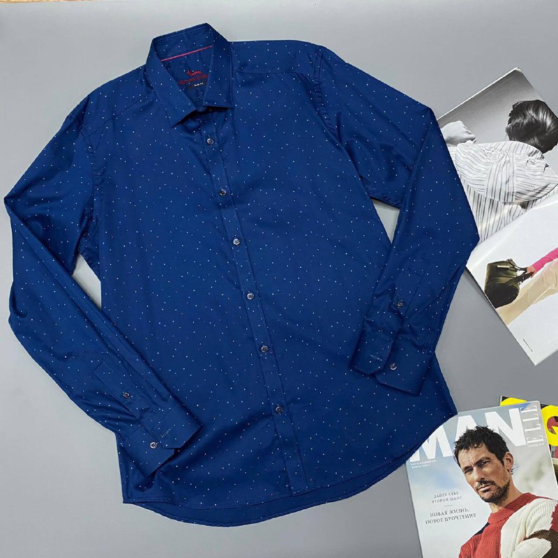 Данная рубашка бренда LUX-53338 выполнена в классическом стиле и станет отличным дополнением к мужскому гардеробу. Темно-синий цвет в мелкий белый горошек придает изделию утонченность. Рубашка с длинным рукавом идеально подойдет как для офисных будней, так и для создания стильных повседневных образов.