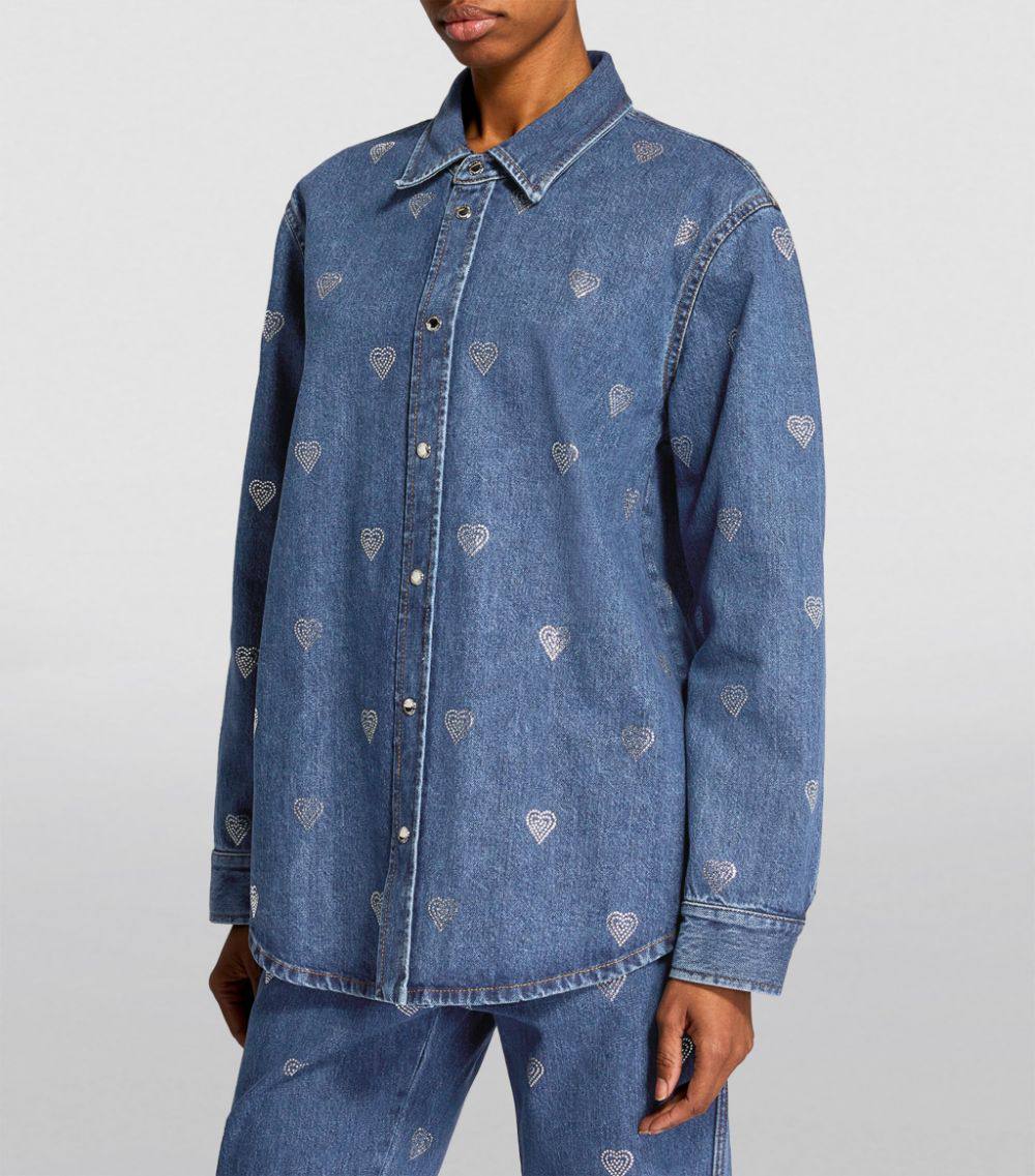 Рубашка MACH & MACH LUX-90032 — это стильная джинсовая рубашка с оригинальным дизайном. Она выполнена в классическом стиле с длинными рукавами и воротником. Рубашка украшена серебристыми сердечками, что придает ей уникальность и женственность.