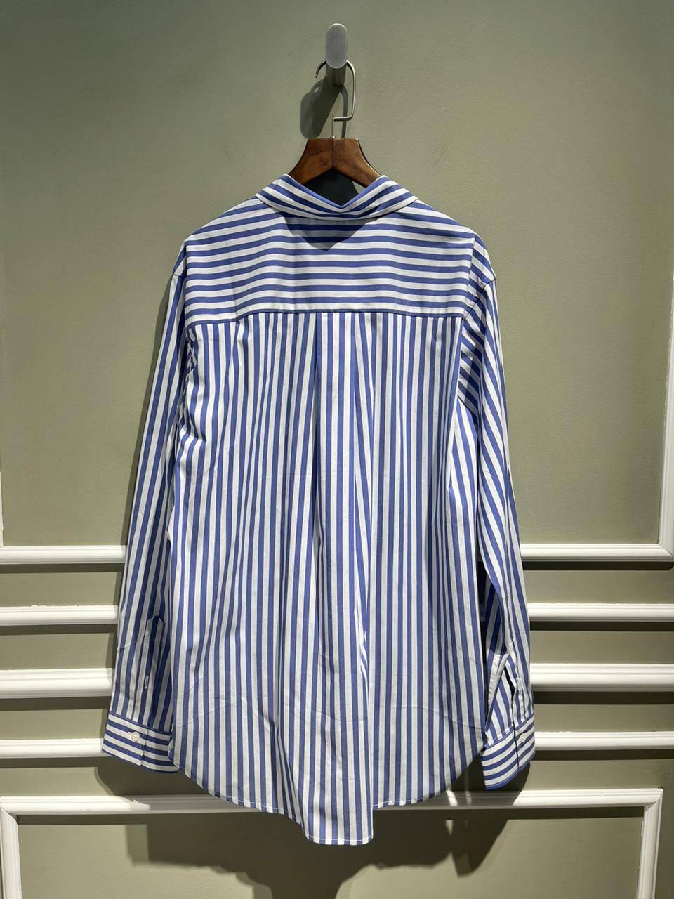 Рубашка Toteme LUX-88394 — это стильная полосатая рубашка, выполненная в классическом стиле. Она имеет прямой крой, длинные рукава и заостренный воротник. Полосы синего и белого цвета создают визуальный интерес и легко сочетаются с различными элементами гардероба.