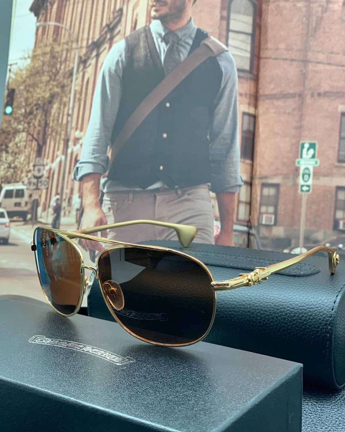 Стильные мужские солнцезащитные очки Chrome Hearts LUX-34216 в золотой оправе с коричневыми линзами. Эта модель отличается элегантным дизайном и высоким качеством исполнения, идеально подходящим для создания завершенного образа. Они прекрасно дополнят ваш гардероб, придав ему нотку изысканности.