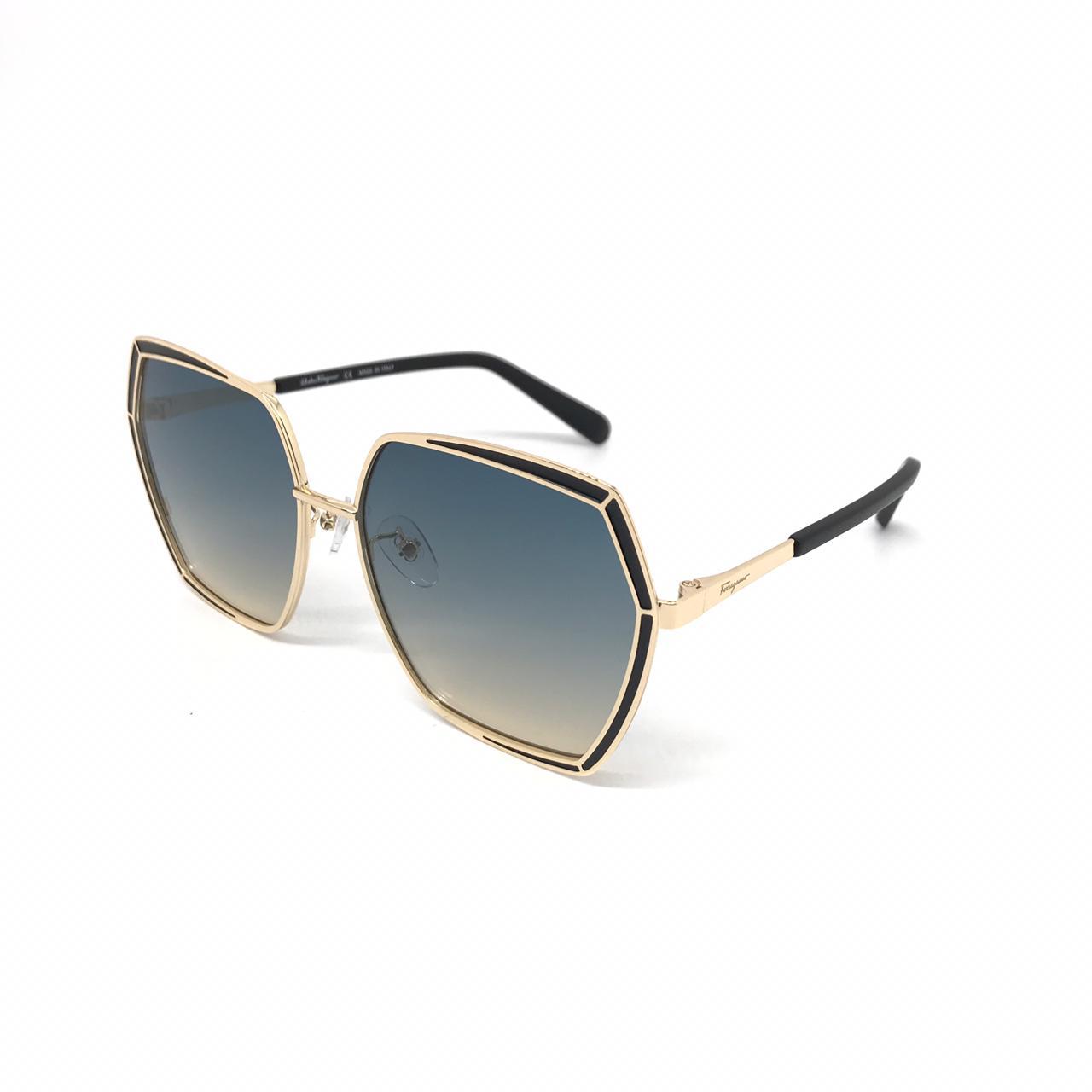 Женские солнцезащитные очки Salvatore Ferragamo LUX-18021 – это стильный аксессуар, сочетающий элегантность и современный дизайн. Геометрическая форма оправы в золотистом оттенке с черными акцентами придает им особую изысканность. Градиентные линзы, переходящие от синего к светло-желтому, обеспечивают отличную защиту от солнца и стильный внешний вид.
