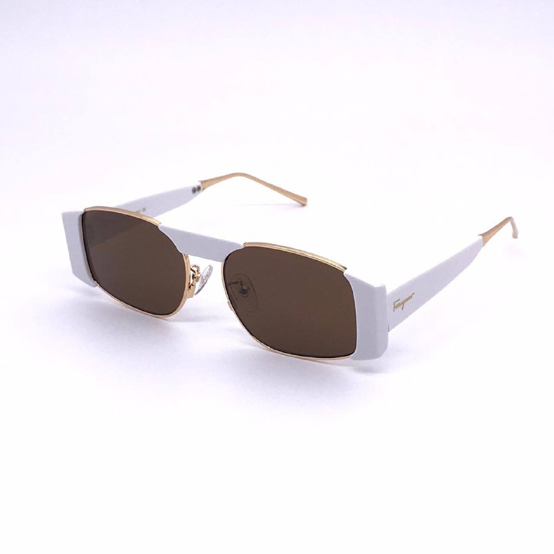 Эти очки Salvatore Ferragamo LUX-53427 сочетают в себе элегантность и современный дизайн. Белая оправа с золотистыми вставками придает им изысканный вид. Коричневые линзы обеспечивают отличную защиту от солнца и стильный акцент. Модель подходит для женщин, ценящих роскошь и высокое качество.