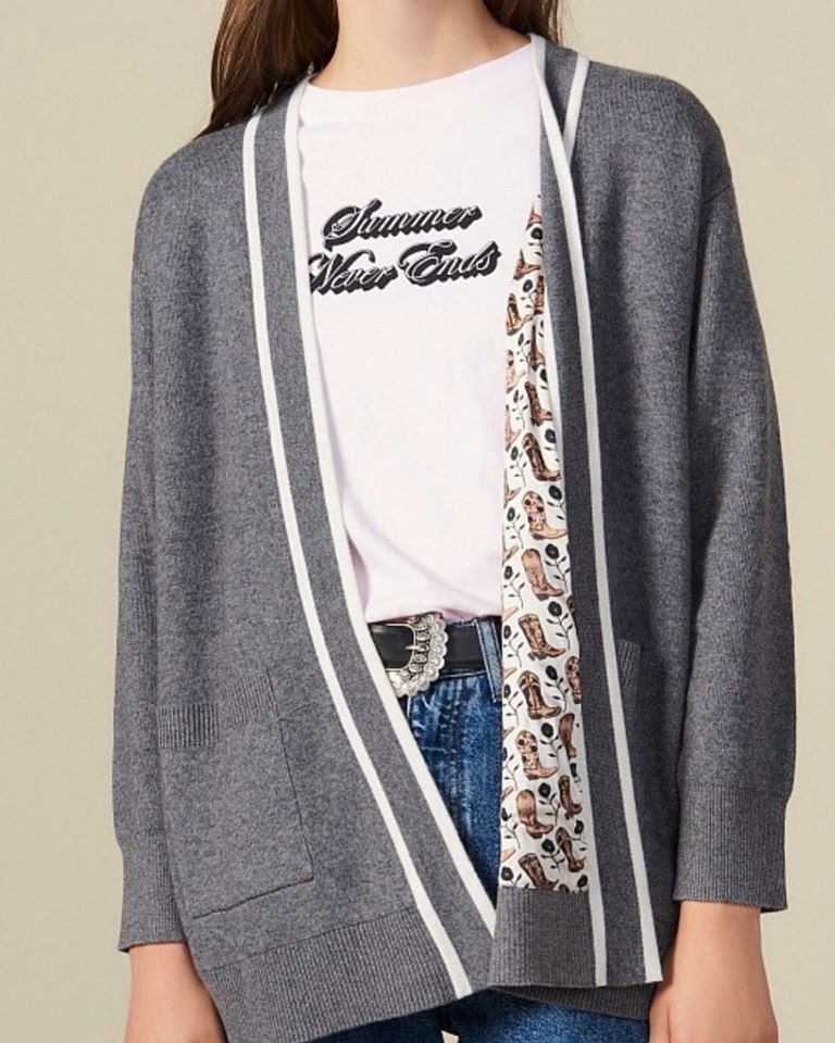 Этот кардиган Sandro LUX-24641 представляет собой стильный и универсальный предмет одежды, который легко впишется в повседневный гардероб. Классический серый цвет и лаконичный крой с контрастными белыми полосами по краям делают его элегантным дополнением к различным образам. Удобные накладные карманы добавляют практичности.