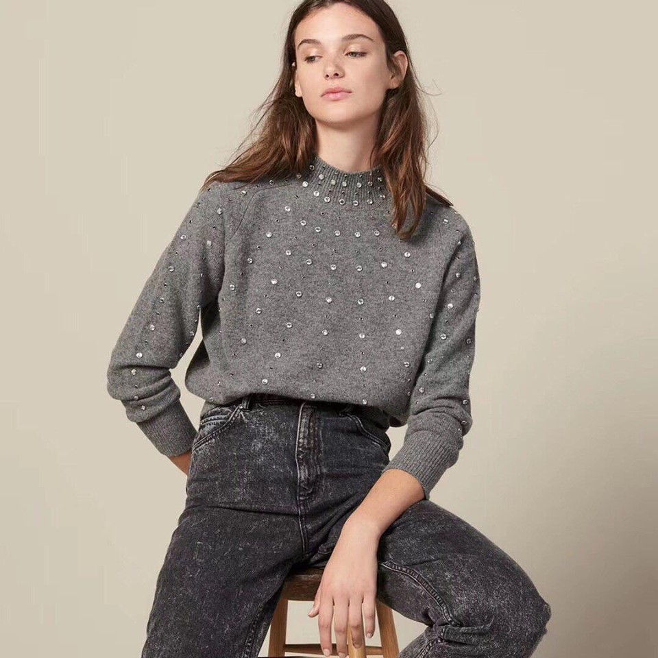 Свитер женский Sandro LUX-21018 — это элегантная и стильная модель, выполненная в сером цвете. Данный свитер идеально подойдет для создания утонченных повседневных образов, добавляя изюминку в ваш гардероб. Дизайн свитера отличается наличием мелких мерцающих деталей, которые придают ему особое очарование.