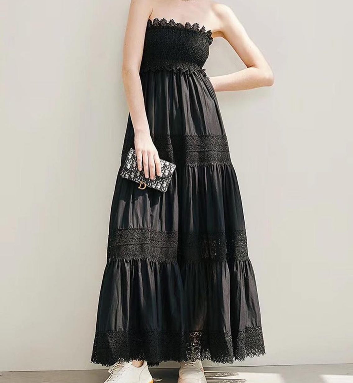 Сарафан LUX-34873 от LUXE CRIME – это элегантное и женственное платье в стиле бохо. Модель выполнена из легкой ткани, что обеспечивает комфорт в летний зной. Платье имеет свободный крой и многоярусную юбку, украшенную кружевными вставками, что придает ему особый шарм и воздушность. Верх платья выполнен в виде корсажа без бретелей, украшенного фактурным узором, что подчеркивает изящность линии плеч.