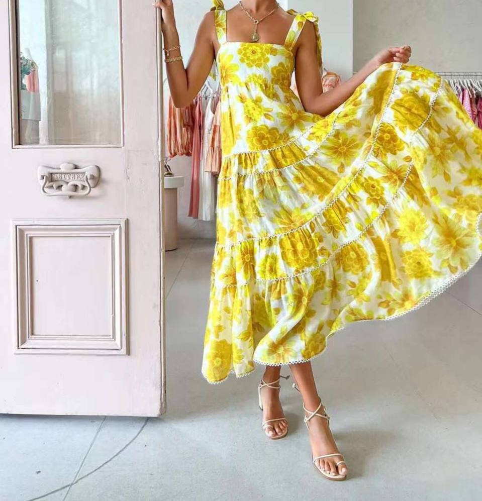 Сарафан Alemais LUX-90949 – это яркое и женственное изделие, воплощающее летнее настроение. Сарафан выполнен в ярком желтом цвете с цветочным принтом. Его свободный крой и легкая ткань делают его идеальным для летнего отдыха и повседневной носки.