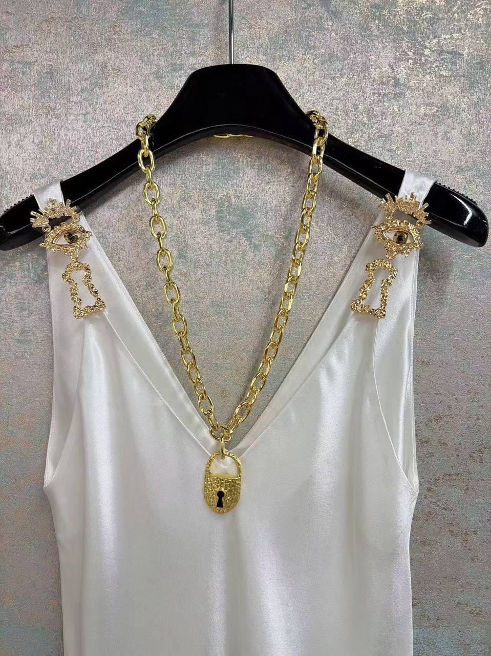 Schiaparelli Plate LUX-131342 - элегантное платье, которое подчеркнет ваш изысканный вкус. Лаконичный дизайн и прямой силуэт делают его универсальным выбором для различных случаев.