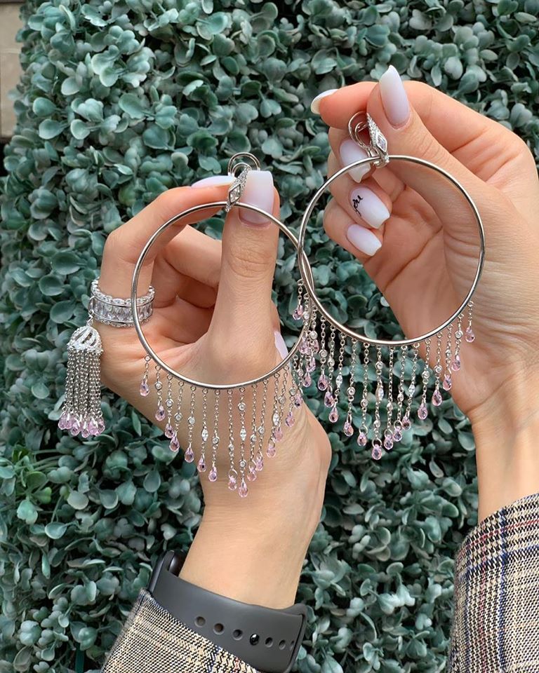 Эти изящные серьги LUX-26316 от бренда LUXE-CRIME представлены в виде крупных колец, украшенных каскадом тонких цепочек с нежными розовыми кристаллами. Дизайн сочетает классическую форму с современными, утонченными деталями, придавая образу легкость и романтичность. Серьги дополнены сверкающими элементами, что делает их идеальным выбором для особых случаев или для придания изысканности повседневному стилю.