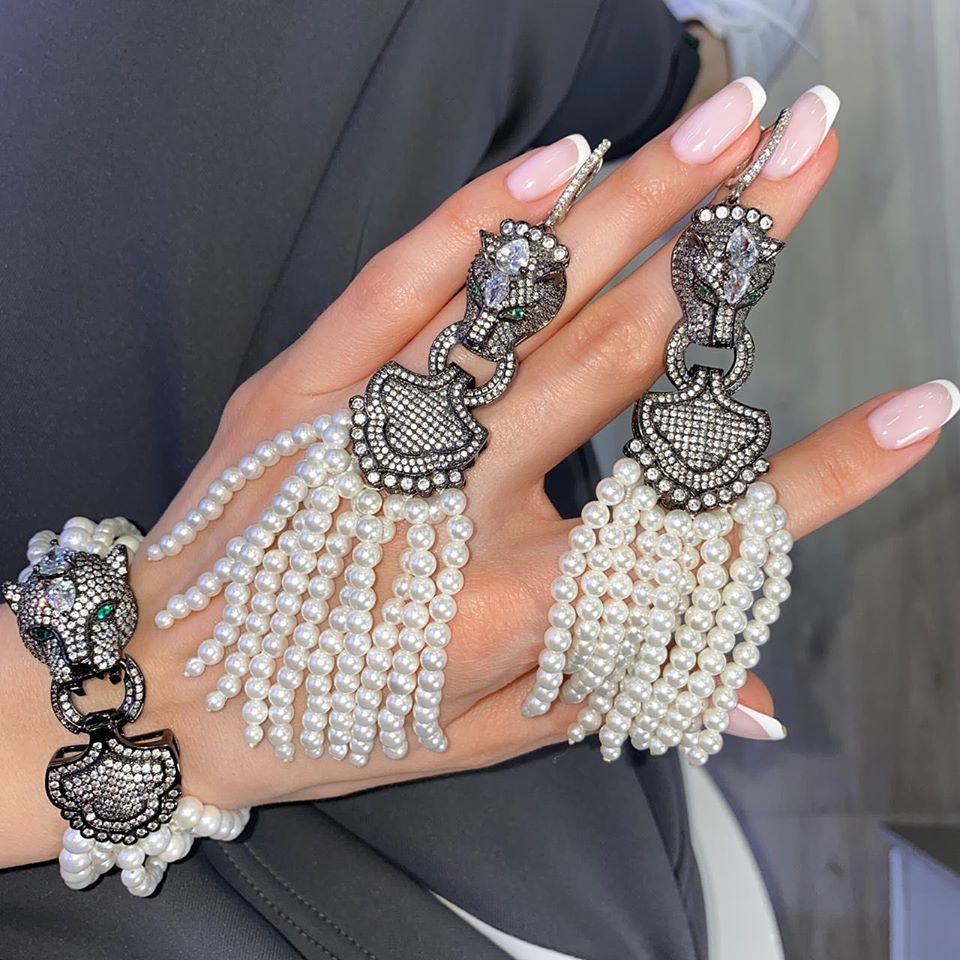 Серьги LUX-29256 от LUXE-CRIME — это роскошное и эффектное украшение, сочетающее в себе винтажный стиль с современным шиком. Искусно выполненные детали в виде головы пантеры, инкрустированной мелкими кристаллами и изумрудными глазками, придают серьгам эксклюзивность. Многочисленные нити жемчуга, ниспадающие каскадом, добавляют образу утонченности и элегантности. Эти серьги идеально подойдут для особых случаев, вечерних выходов и создания неповторимого образа.